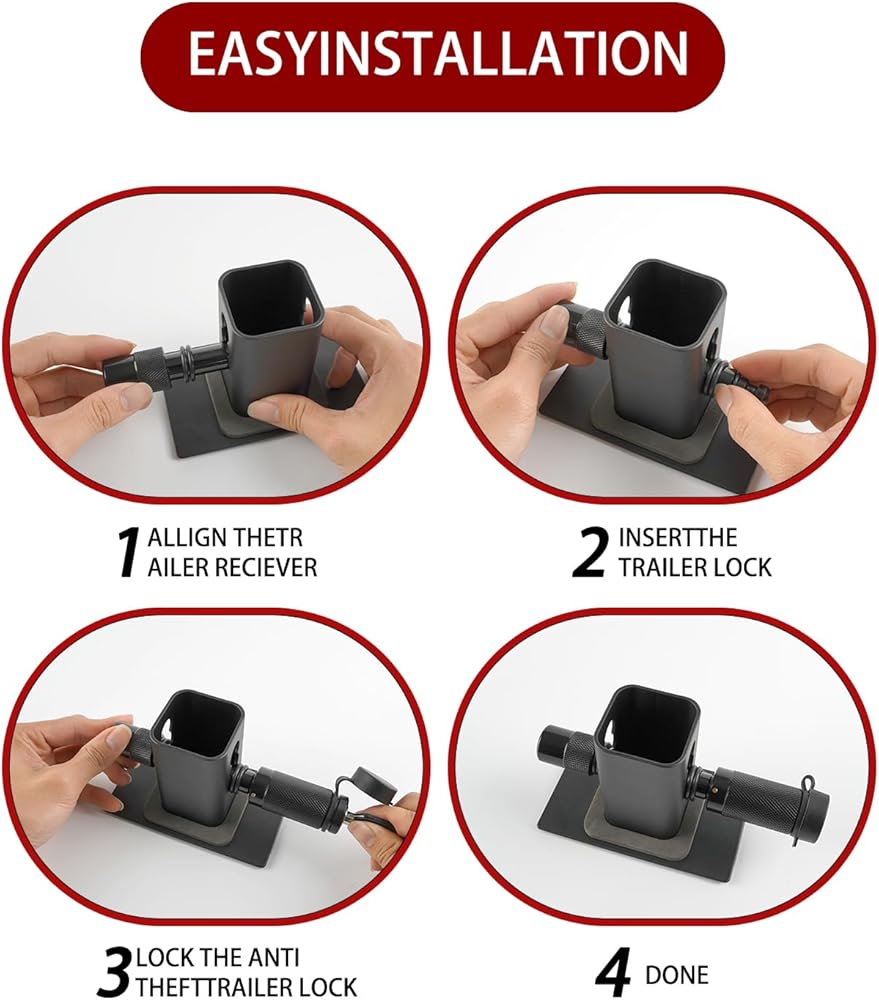 【قفل مفتاح قوي】- تم تصميم قفل وصلة المقطورة هذا لتحمل أي ضغط ثقيل دون الانحناء. آلية القفل المحكمة تمنع غطاء وصلة الجر من التأرجح على الطرق الوعرة، ويضمن نظام قفل المفتاح الفريد وظيفة كاملة ضد السرقة.