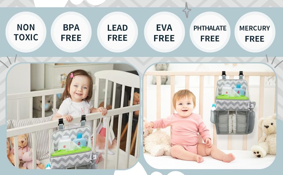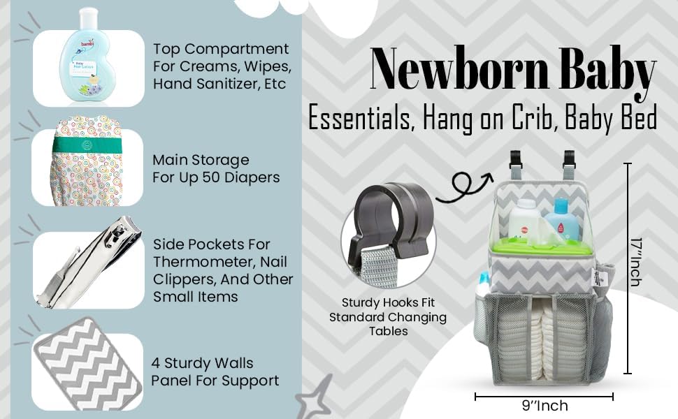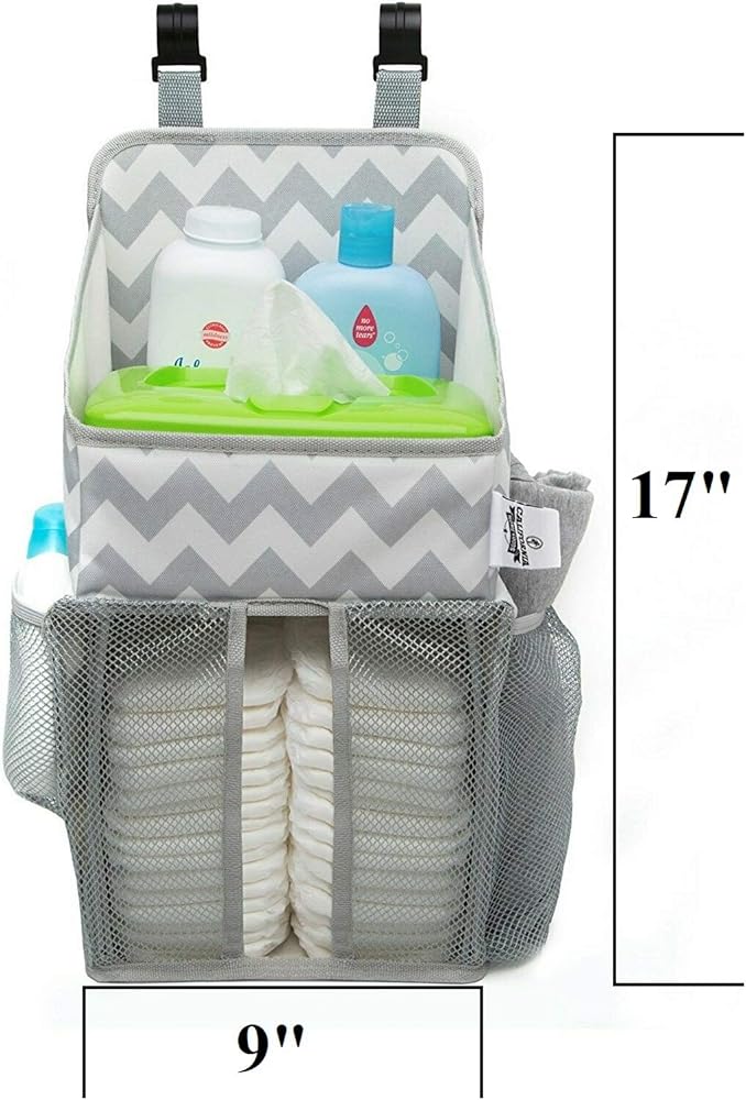EFFORTLESSLY ATTACHES TO ALL CHANGING TABLES, DRESSERS OR CRIBS: Durable plastic hanging hooks ensure that our caddy will stay in place while you tend to your little one.