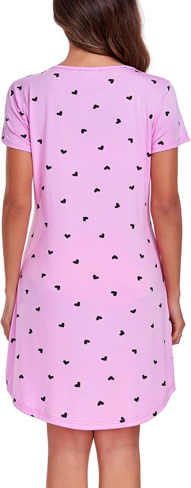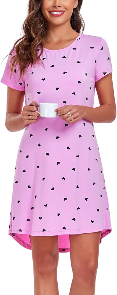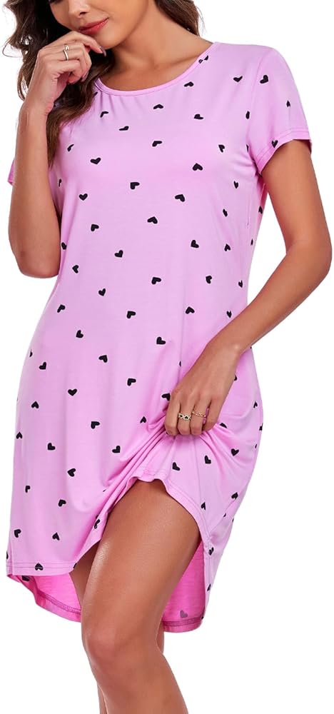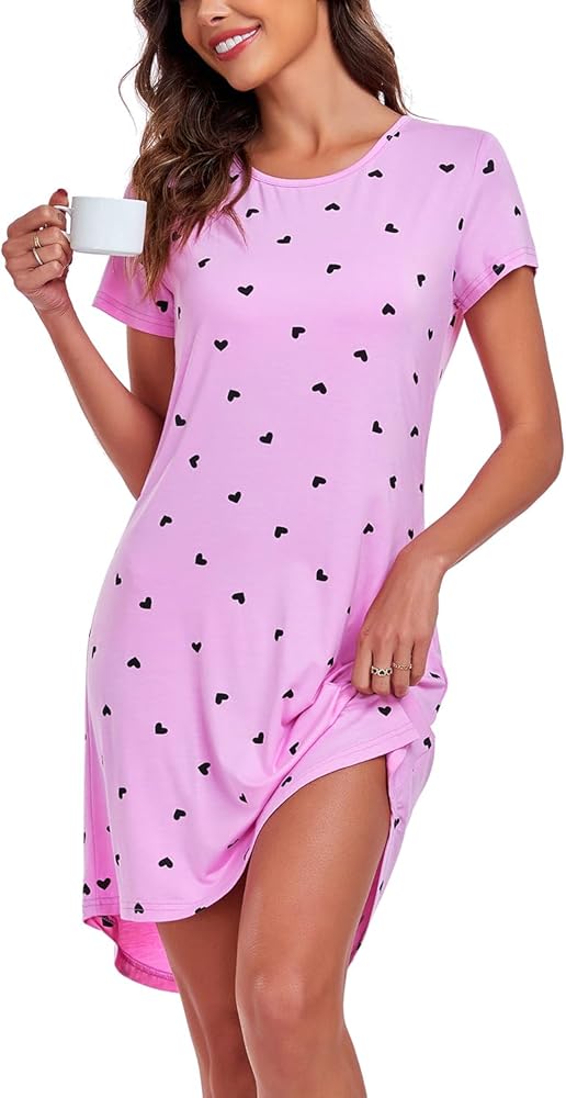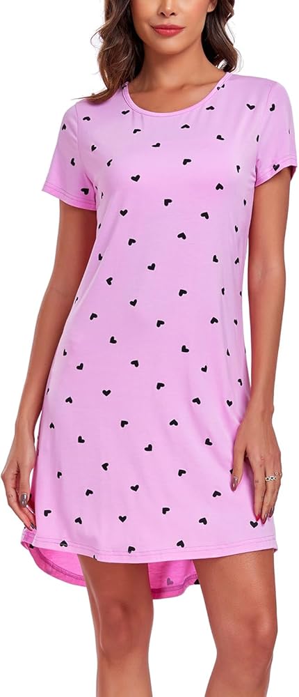 قميص نوم نسائي من EISHOPEER قميص نوم لطيف بأكمام قصيرة قميص نوم ناعم، تي شيرت نوم، أرجواني L