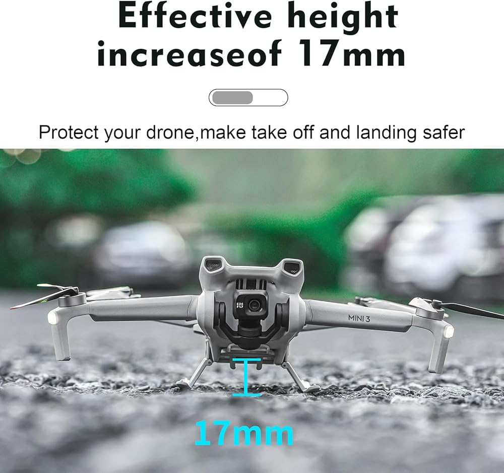 • 【Please note the model number】This Landing Gear Legs and Water Landing Gear Legs Set is designed for DJI Mini 3. The landing gear legs fit perfectly with the drone and will not affect the maneuverability of the drone at all.
