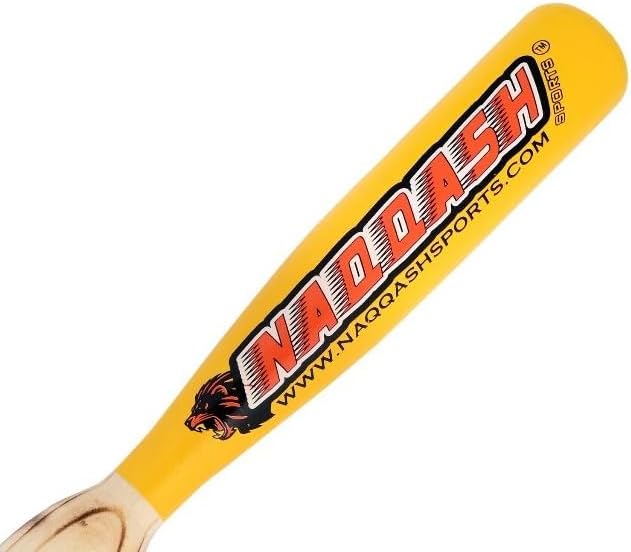 Naqqash sports wooden baseball bat in Yellow color with 29 inches / 33 oz, Knob: Flade Knob A two-hand weighted baseball bat is a training tool designed to improve strength, bat speed, and overall swing mechanics by adding weight to a regular bat. It is used to enhance muscle development and coordination in both hands during the swing. Here's some information about two-hand weighted baseball bats: