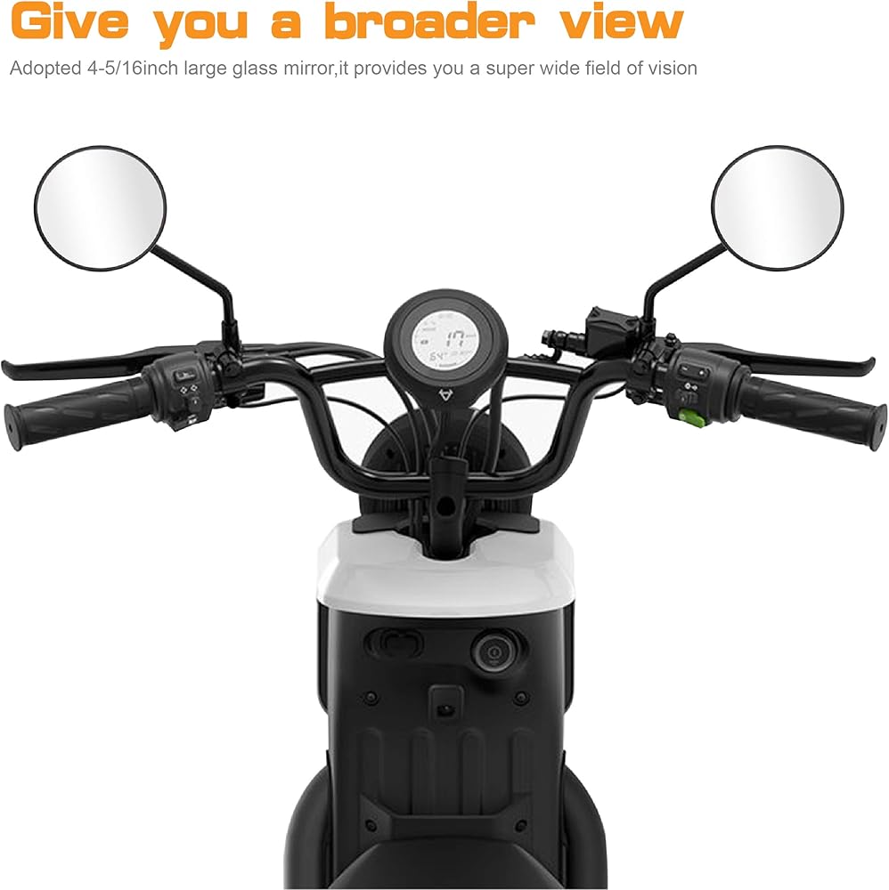 • رؤية واضحة: مرايا الدراجة النارية على الجانب الأيسر والأيمن مقاس 4.3 سم، توفر لك رؤية خلفية عالية الوضوح، لا مزيد من النظر إلى الخلف أثناء القيادة!