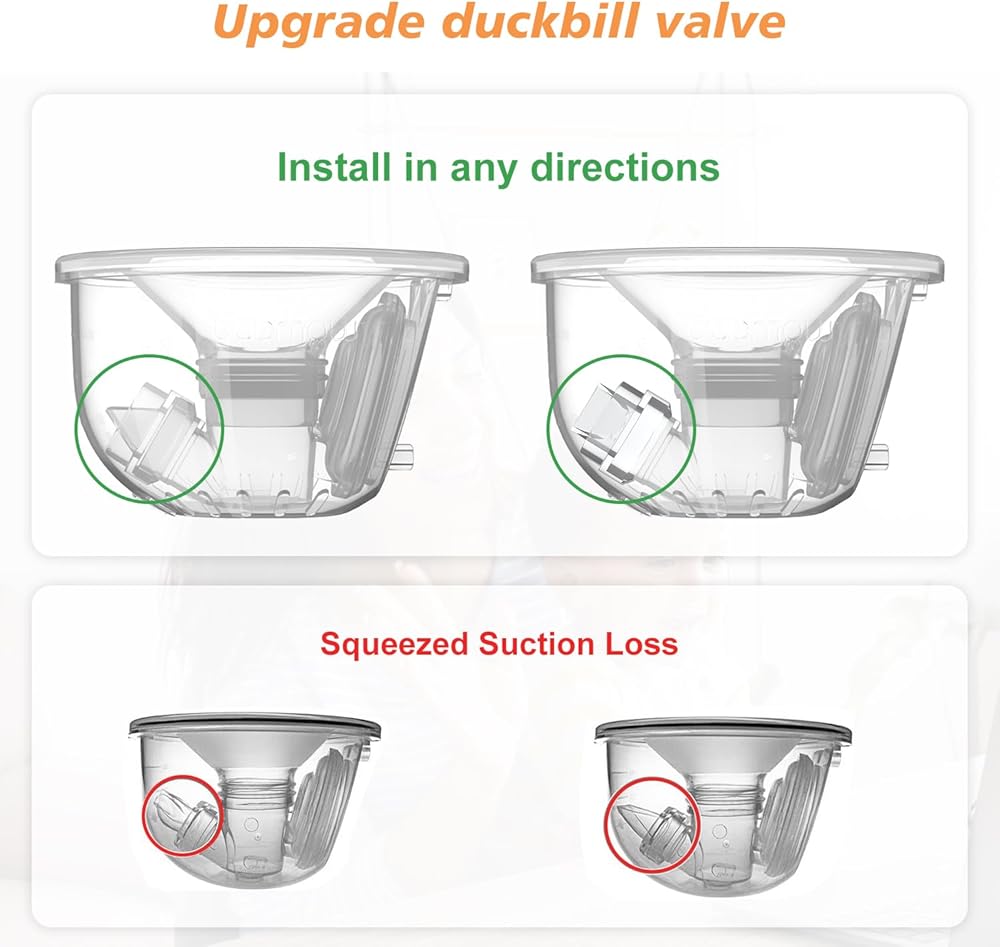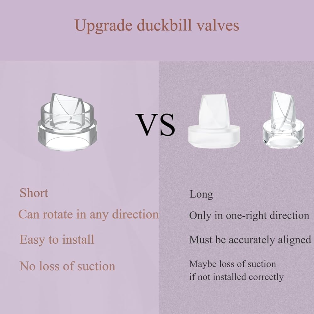 Upgrade duckbill valve can rotate in any direction,easy to install,remove and clean(The original parts must be accurately aligned;otherwise,there may be leaks and inadequate suction).Same suction as original Momcozy S12 Pro/S9 Pro duckbill valves.No loss of suction.