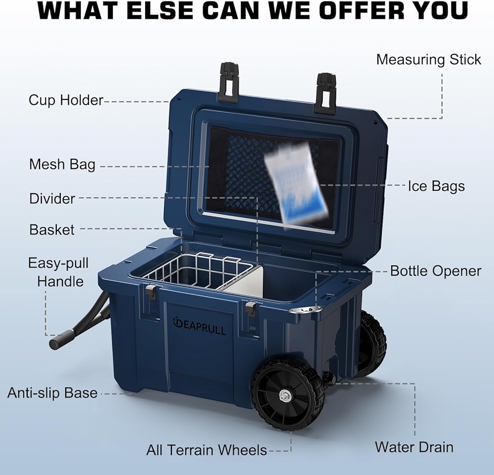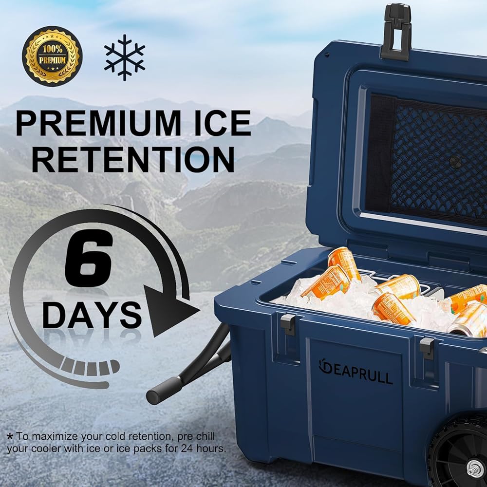 • 🧊 احتفاظ ممتد بالثلج: مبرد مع ما يصل إلى 2.5 بوصة من العزل الرغوي الخلوي المغلق وحلقة إغلاق من درجة الثلاجة، يحافظ على الطعام والمشروبات باردة لمدة تصل إلى 6 أيام، مما يضمن النضارة طوال مغامراتك الخارجية.