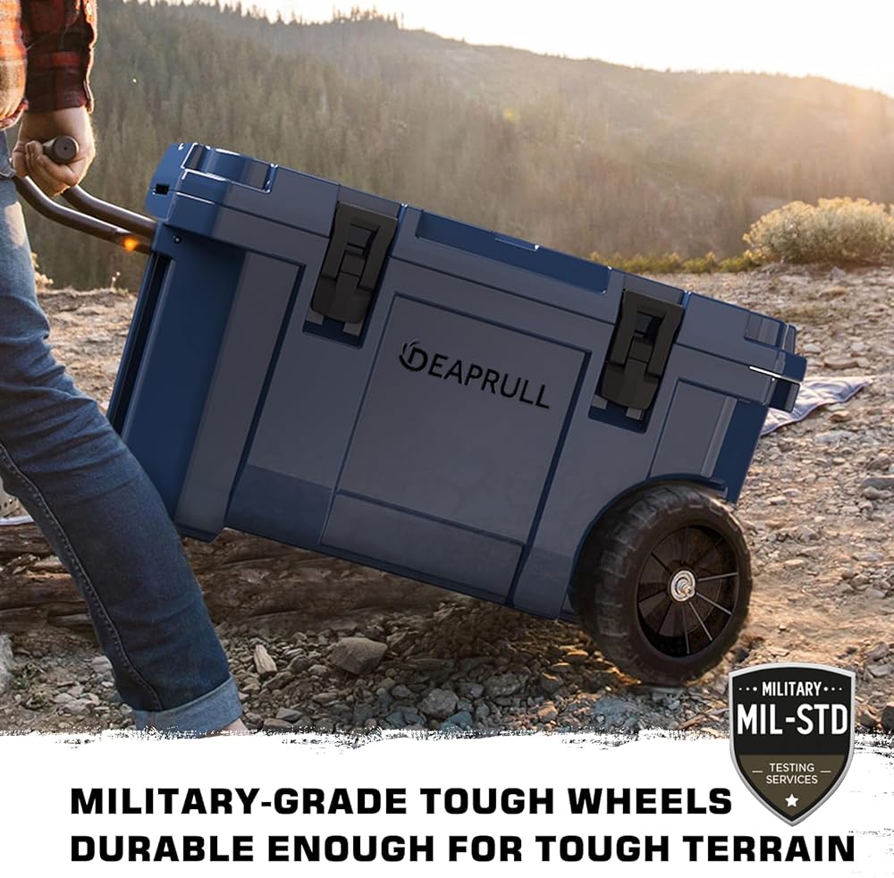 • 🧊 التنقل لجميع التضاريس: يتميز بعجلات فائقة القوة مقاس 4 بوصات، بما في ذلك عجلات 2*4 بوصة لجميع التضاريس، ويمكن للمبرد الصلب التنقل بسهولة في التضاريس الوعرة، مما يجعله مثاليًا للتخييم ورحلات الشاطئ والمزيد.