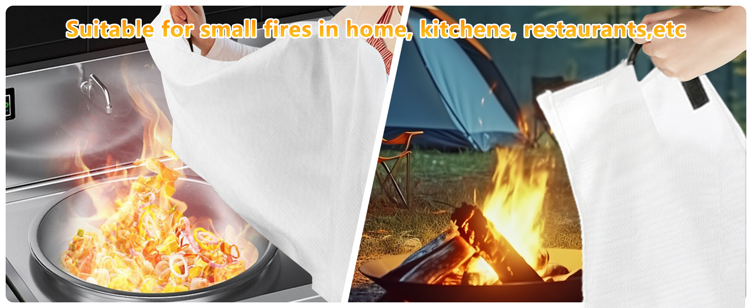 【بطانيات حريق للمطبخ المنزلي】 إنها ضرورية لسلامة كل منزل كبطانية حريق واقية للبقاء على قيد الحياة في حالات الطوارئ.. يمكن لبطانية الحريق المصنوعة من الألياف الزجاجية أن تقطع الأكسجين وتساعد الناس في حالة نشوب حريق مفاجئ. يمكن لف بطانية الألياف الزجاجية المرنة المقاومة للهب حول الشخص أو إلقاؤها فوق النار لإخماد النيران. وهو أمر رائع للسلامة في المطبخ، الموقد، الشواية، المنزل، القوارب، السيارات، التخييم، اللحام، المكتب.