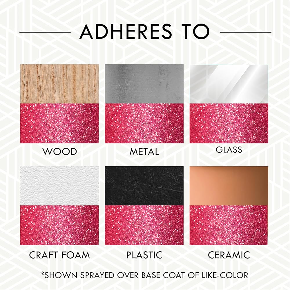 Rust-Oleum Specialty Glitter Spray provides an intense sparkling finish for any craft or decorative project. Ideal for many surfaces including wood, metal, wicker glass ceramic, pottery, craft foam, paper, plastic and more.