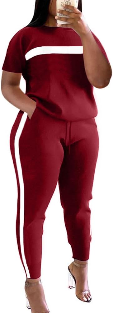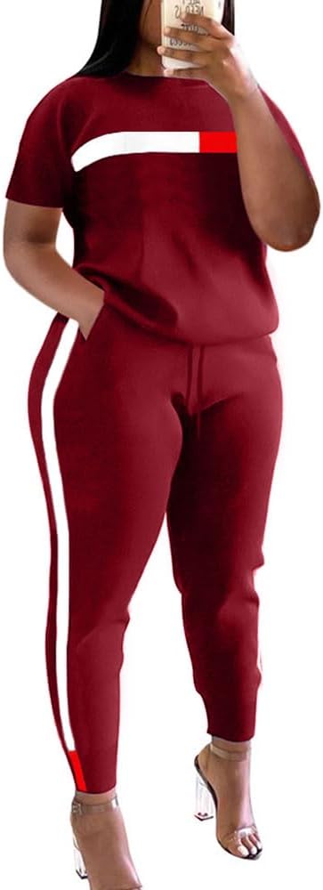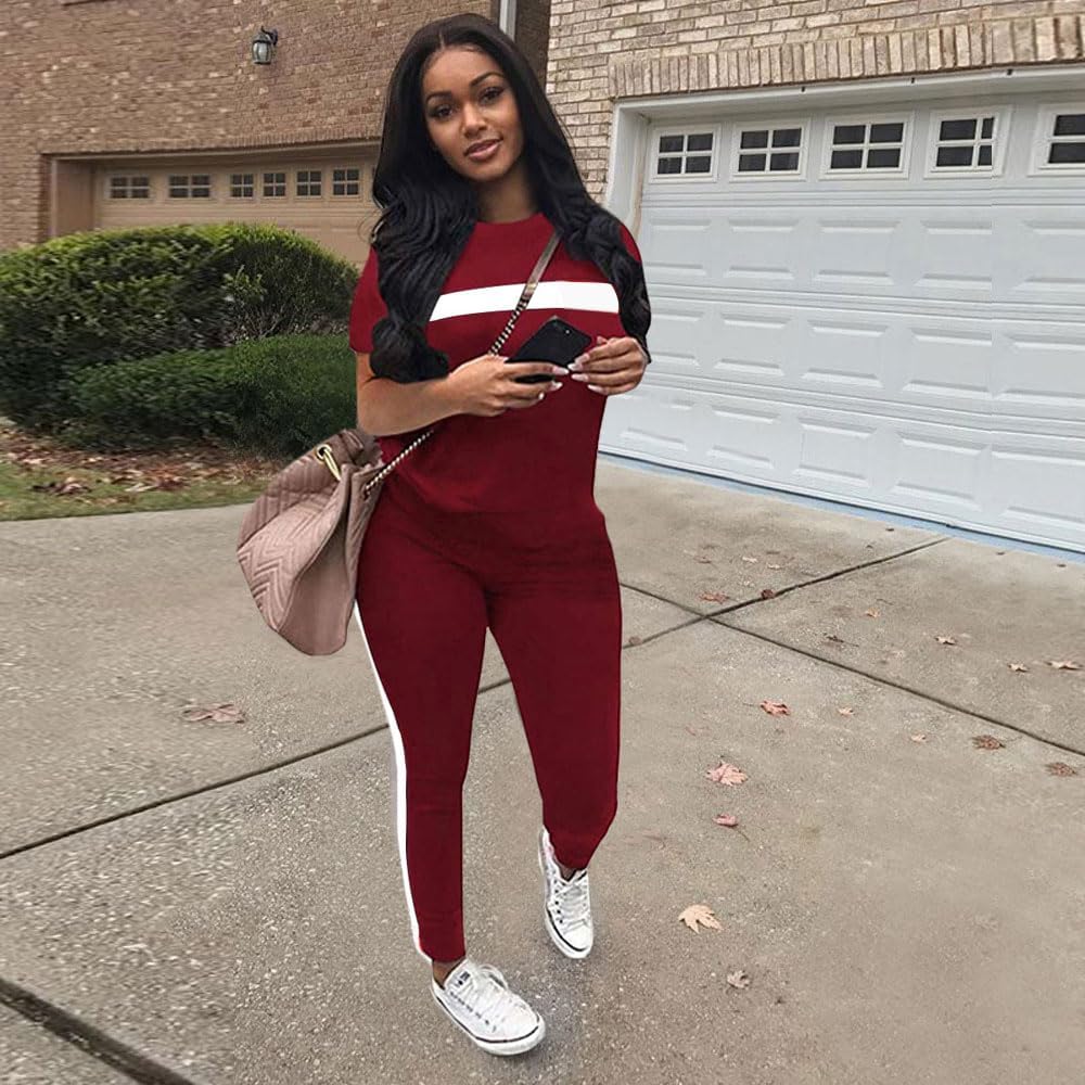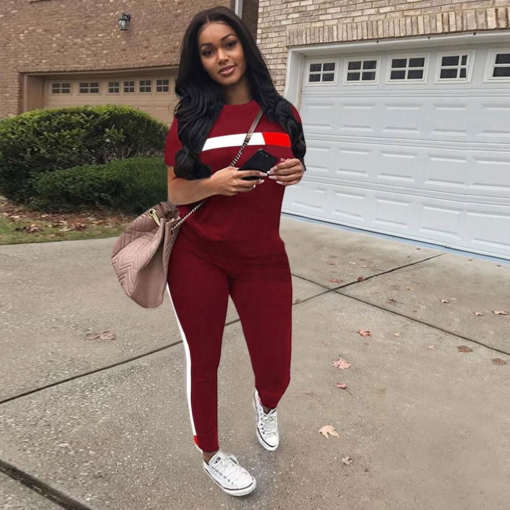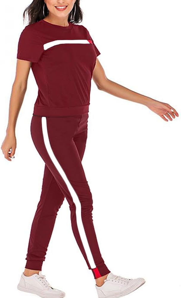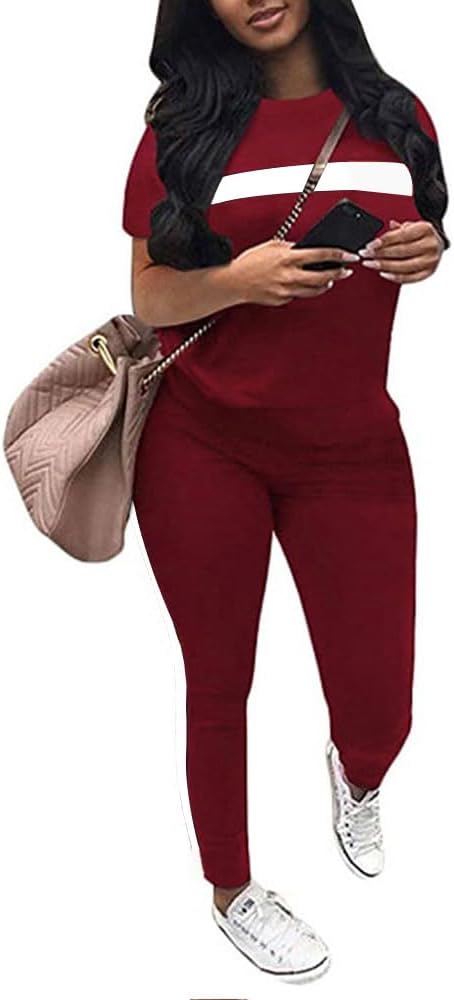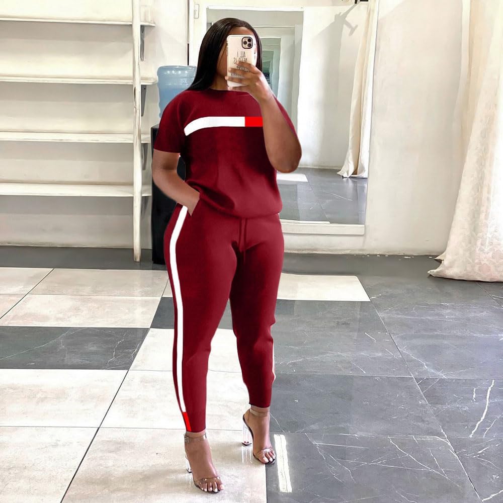- ② المميزات - بدلة رياضية مكونة من قطعتين للسيدات، رقبة دائرية، أكمام قصيرة، كتلة ألوان، شريط، خصر مرن، سراويل طويلة، جيوب، مقاس غير رسمي.