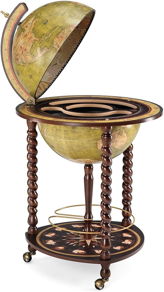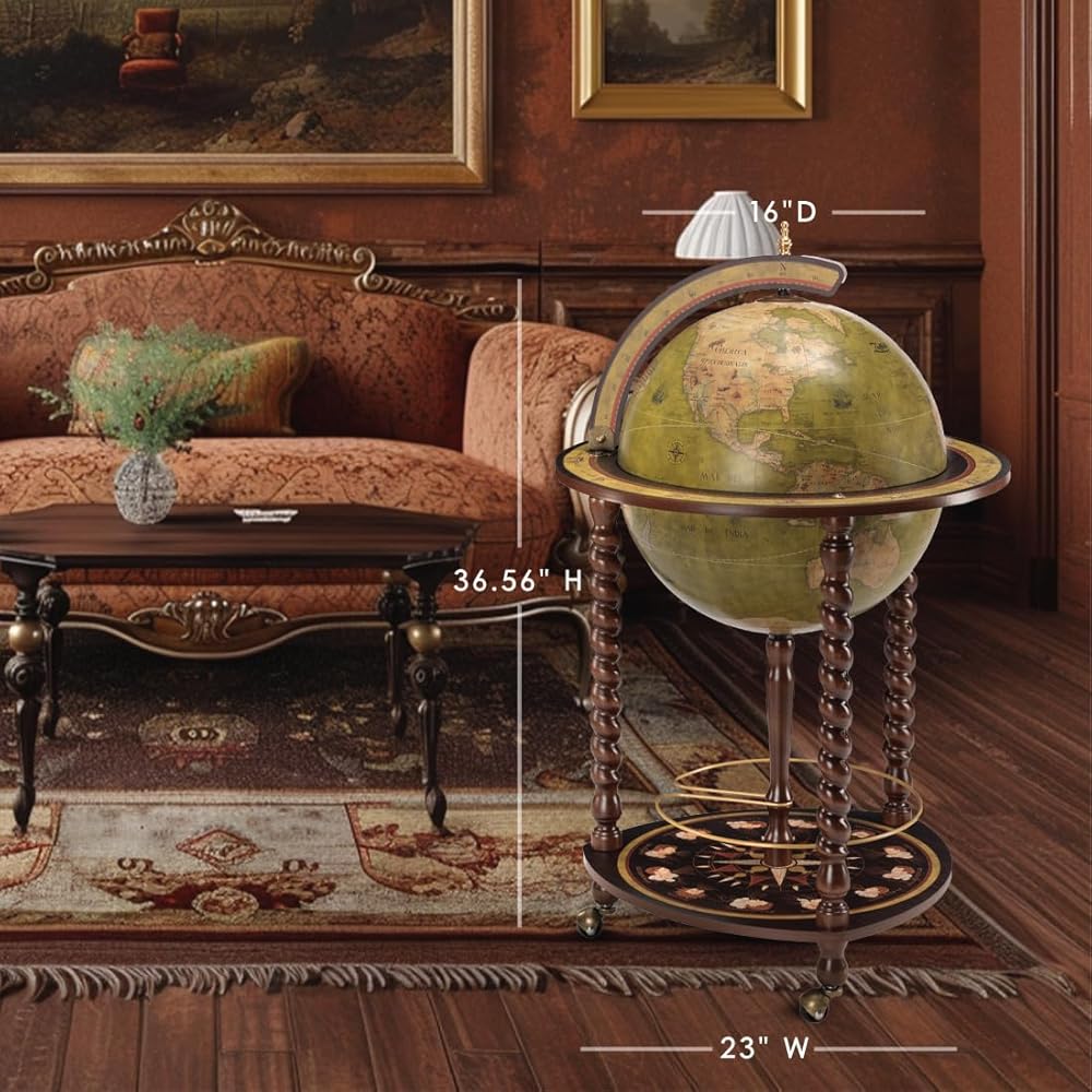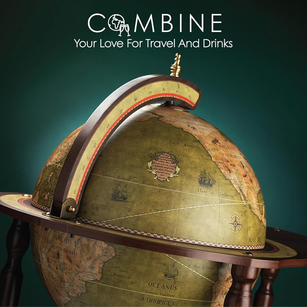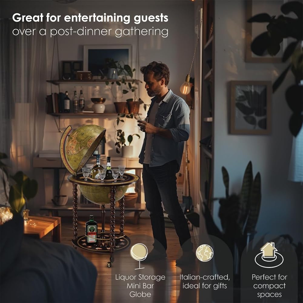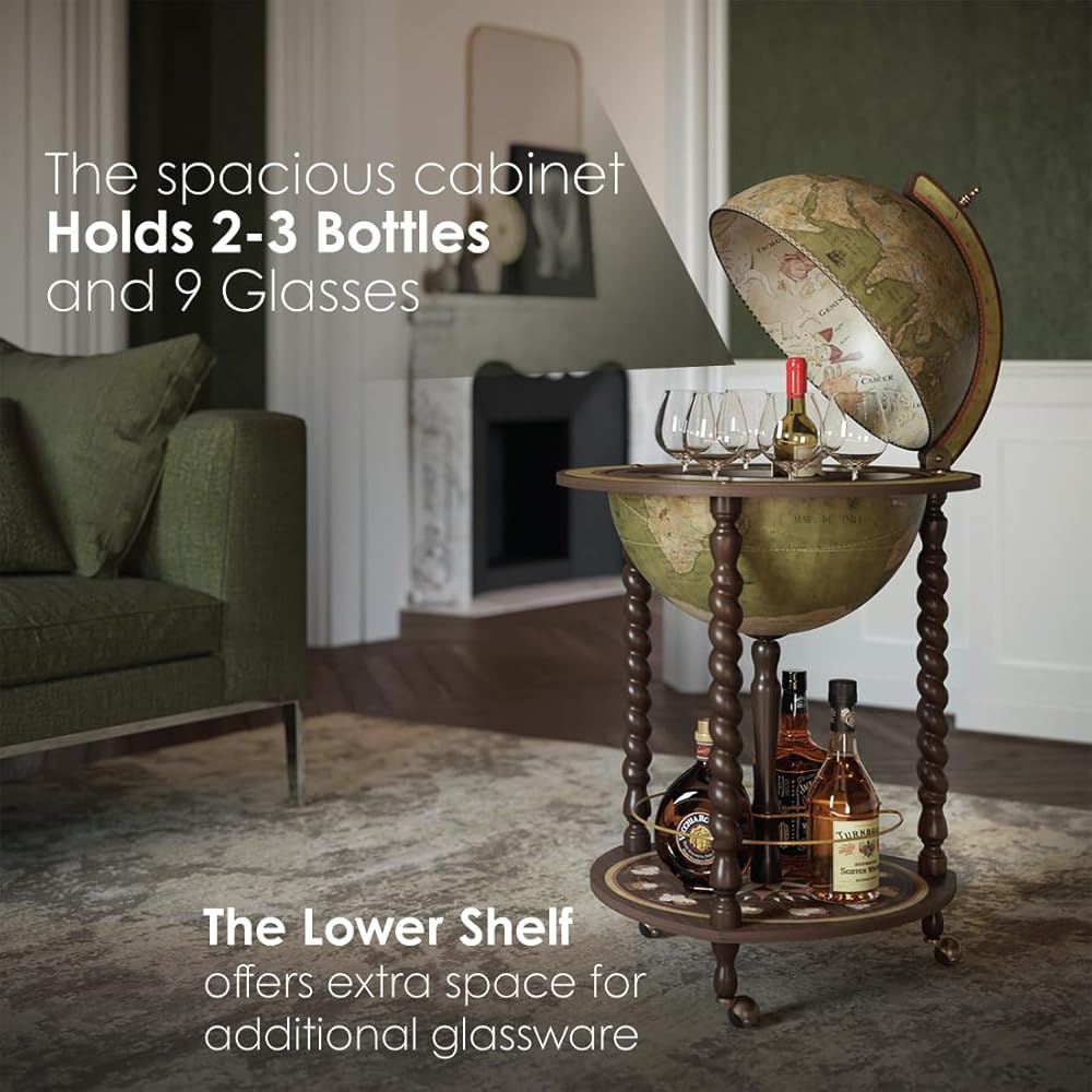 الكرة الأرضية مع بار صغير - داخل الكرة الأرضية مقاس 16 بوصة، ستكتشف خزانة مشروبات كبيرة الحجم. قادرة على استيعاب 2 إلى 3 زجاجات وحوالي 9 أكواب، فهي توفر كلاً من العملية والأناقة في قطعة واحدة رائعة.