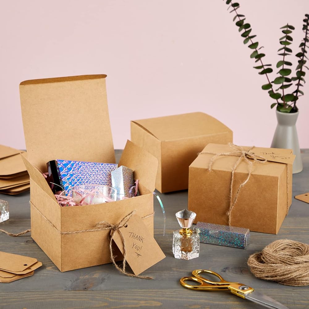Reliable Quality: The decorative gift boxes with lids are made from brown kraft paper with accompanying twine string and kraft paper label