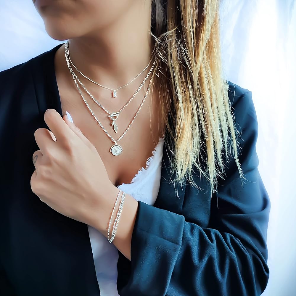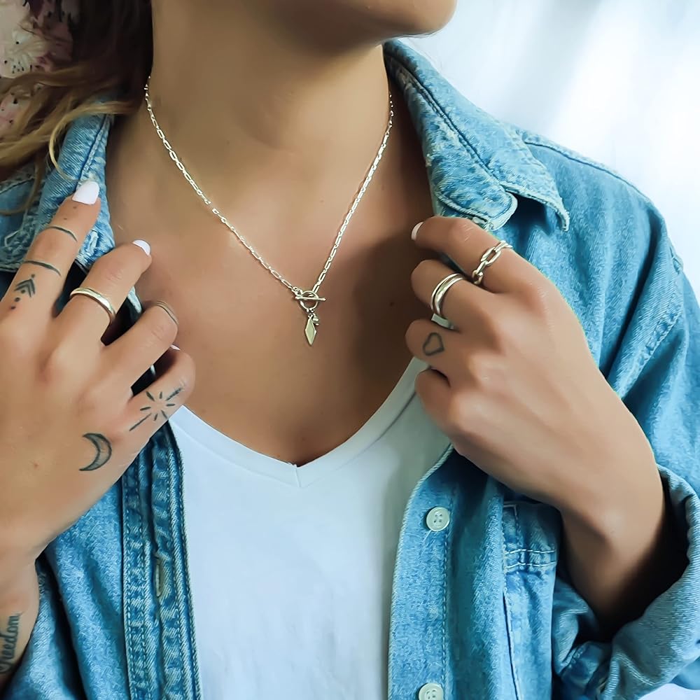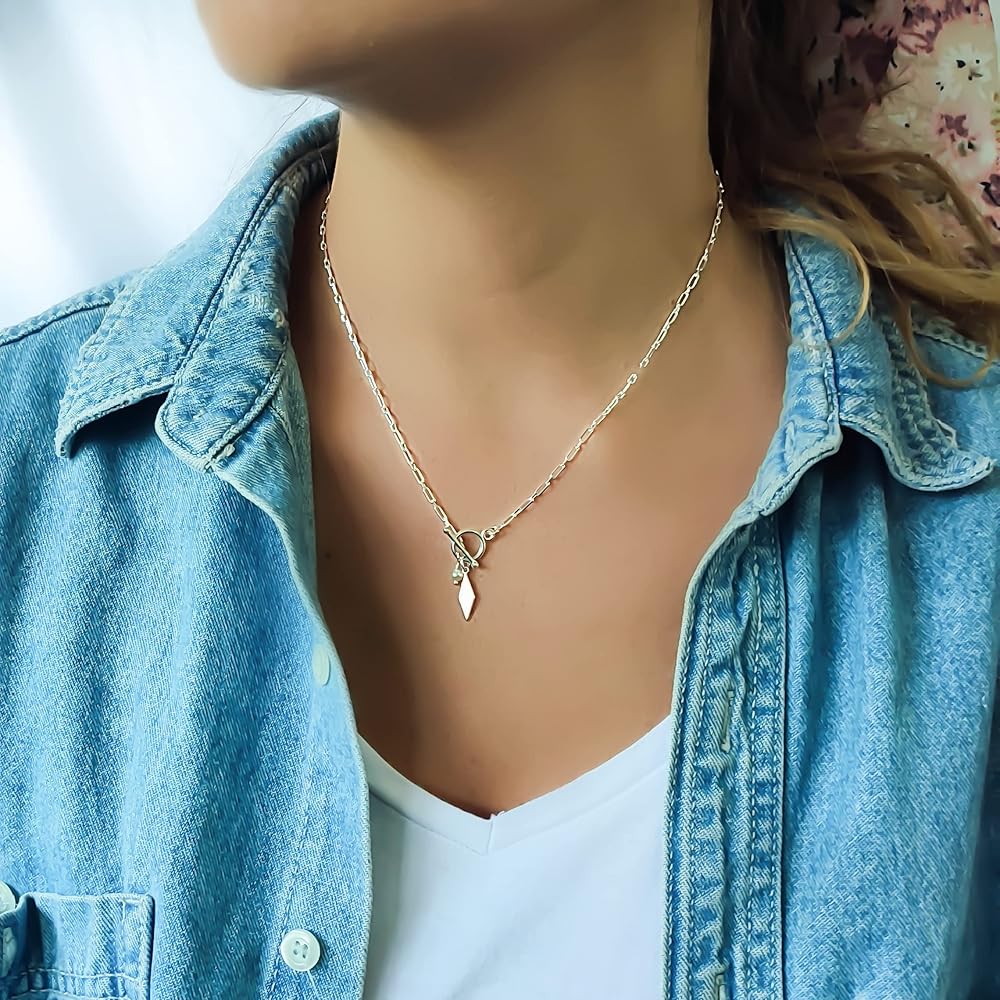 قلادة Annika Bella Toggle للنساء، الطول 45.72 سم، قلادة من الفضة الإسترلينية على شكل حرف T، مقاومة للماء، قلادة بقفل أمامي، مجوهرات يومية
