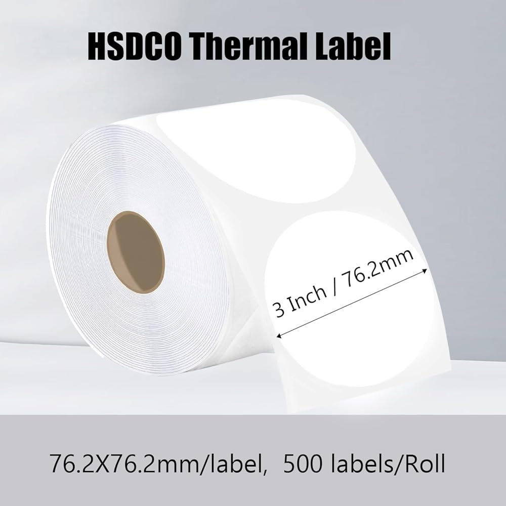 • [What You Get] 1 roll authentic HSDCO thermal labels. Round thermal sticker with the size: 3"/76.2mm, circle, 500 labels/roll.