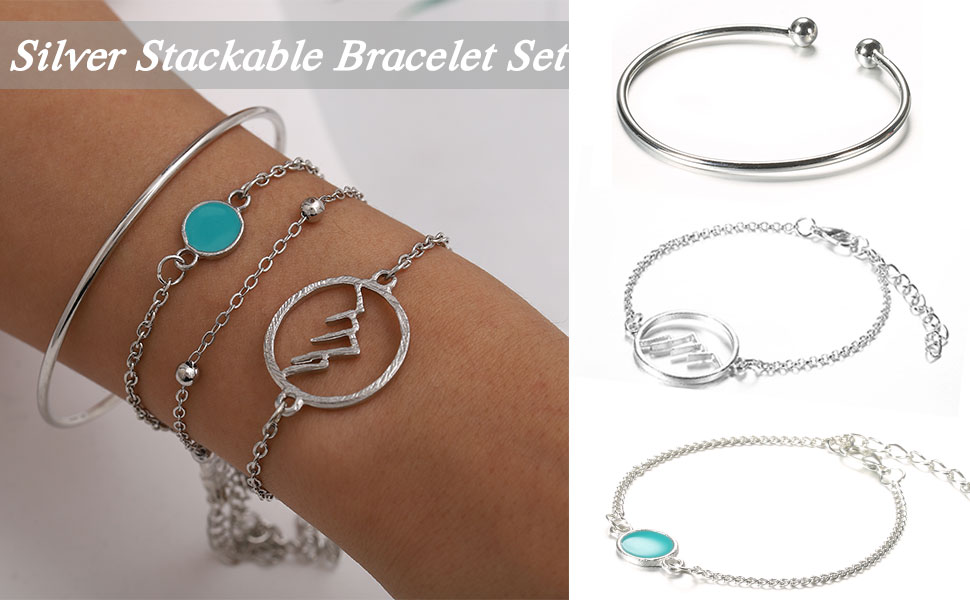 مجموعة الأساور الفضية مصنوعة من سبائك صديقة للبيئة ومطلية بالفضة. مجوهرات عصرية على شكل سوار سلكي لامع للنساء مريحة في الارتداء.