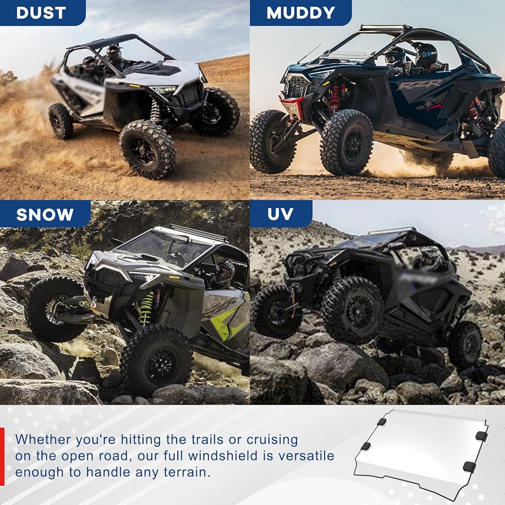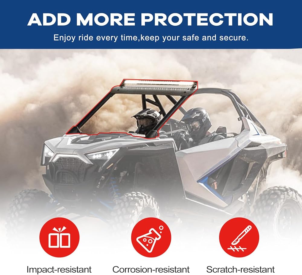 【ملحقات يجب اقتناؤها】يعد الزجاج الأمامي RZR Font من الملحقات التي يجب اقتناؤها لعشاق الطرق الوعرة. توفر مادتها عالية الجودة حماية ممتازة ضد الرياح والغبار والحطام، مما يضمن قيادة مريحة وآمنة.