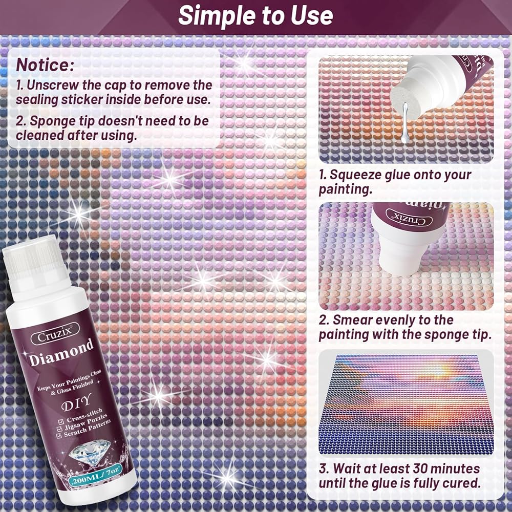 💎No residue: The glue for diamond doesn't leave sticky white film after it is completely dried and cured.