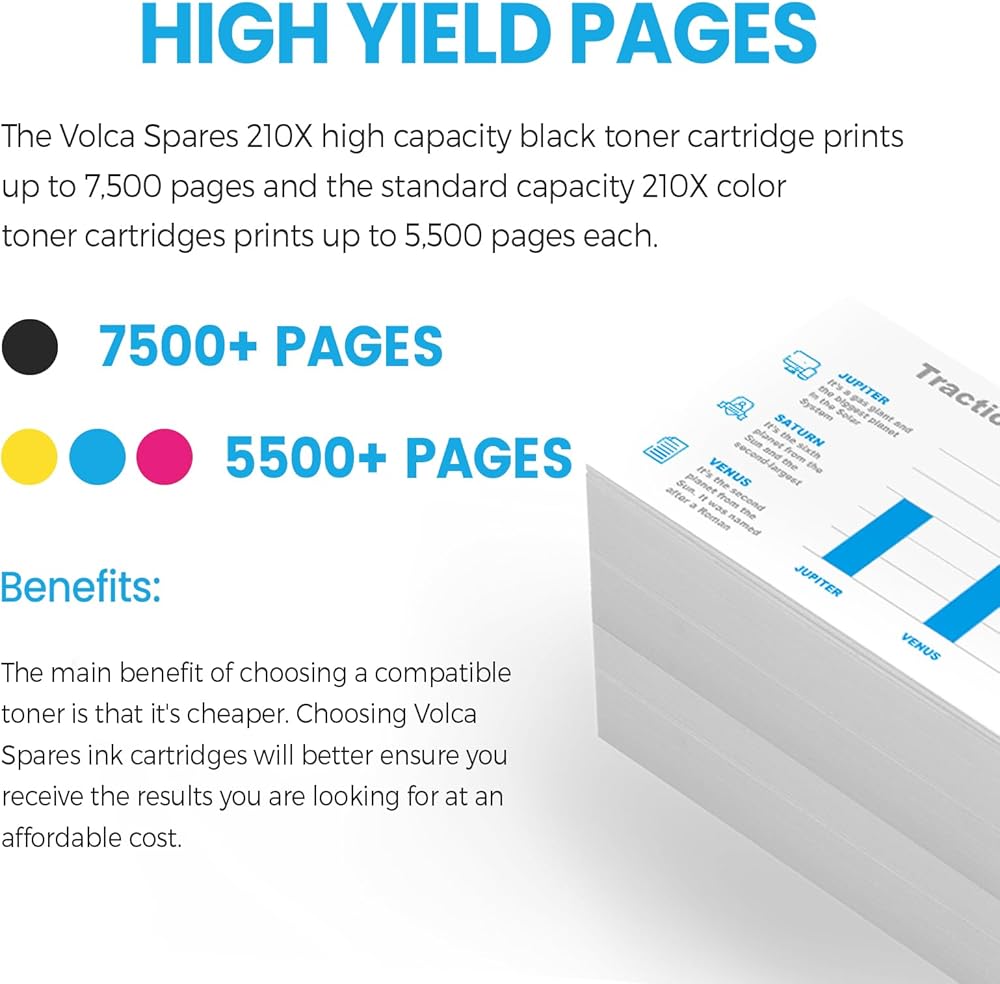 Welcome to Volca Spares, your one-stop destination for high-quality toner cartridges designed specifically for HP LaserJet Pro MFP 4301fdw, 4301fdn, 4301dw, 4201dw, and 4201dn printers. We understand the importance of reliable printing solutions for your business, which is why we have meticulously crafted the Volca Spares 210A and 210X High Yield Toner Cartridges to meet your printing needs. Our commitment to excellence is evident in the exceptional performance and longevity of our toner cartridges. With our high-yield capacity, you can expect a significant increase in the number of pages printed per cartridge, reducing the frequency of replacements and enhancing productivity. At Volca Spares, we prioritize customer satisfaction, and that's why our toner cartridges are manufactured to meet or exceed the OEM standards. This means you can count on crisp, sharp prints with every document, presentation, or marketing material you create. Our cartridges are designed to seamlessly integrate with your HP LaserJet Pro printer, ensuring consistent and reliable printing results. We understand that running a business involves managing costs, and that's why we offer our Volca Spares toner cartridges at competitive prices without compromising on quality. With our products, you can achieve professional-quality prints while optimizing your printing budget. When it comes to customer support, we are here to assist you every step of the way. Our knowledgeable team is ready to answer any questions you may have and provide you with prompt assistance. We strive to make your shopping experience with us hassle-free and enjoyable. Choose Volca Spares for your toner cartridge needs and experience the difference in print quality and performance. Trust in our commitment to delivering exceptional products that help you achieve outstanding print results, every time. Shop with us today and elevate your printing experience.