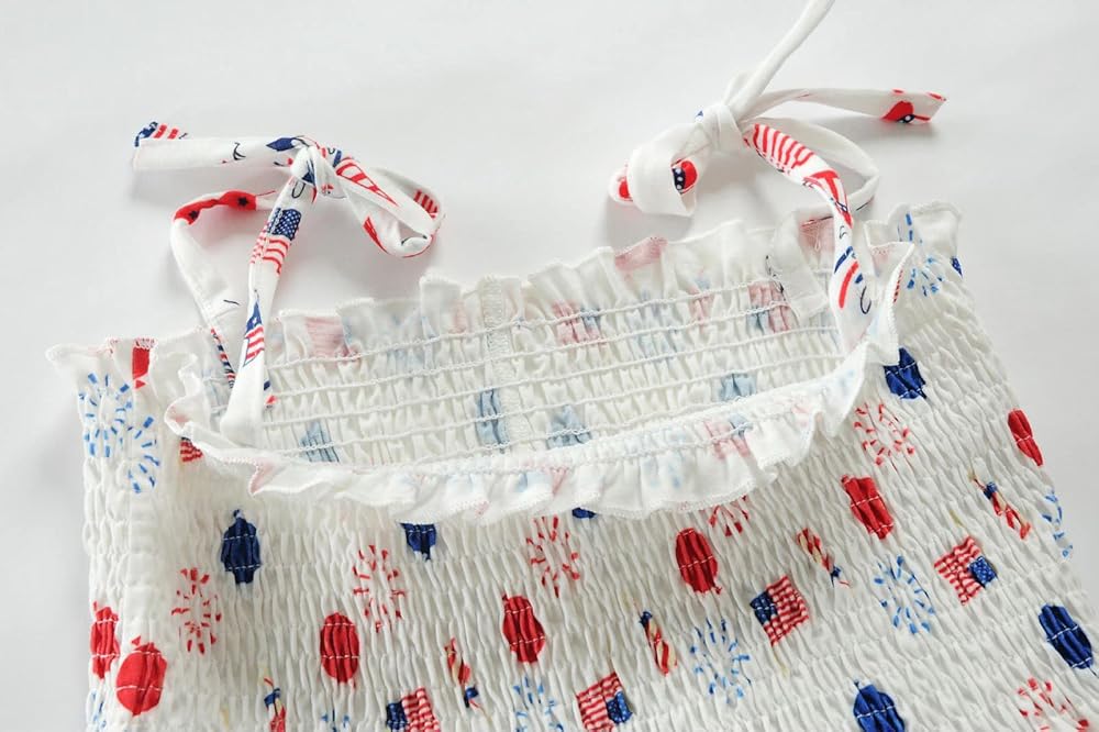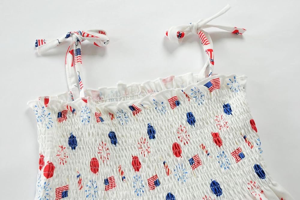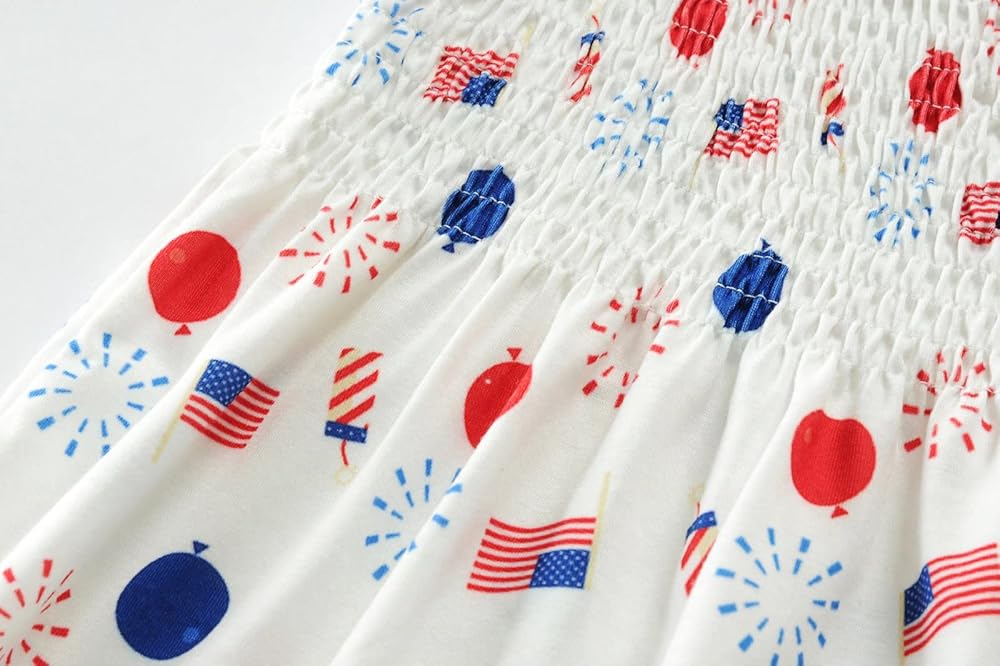فستان متوهج للفتيات ذو العلم الأمريكي، تنورة سهلة الارتداء، بدون أكمام، كاجوال، مناسب للأعمار من 1 إلى 7 سنوات