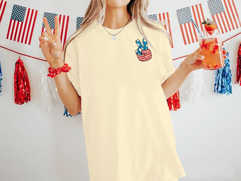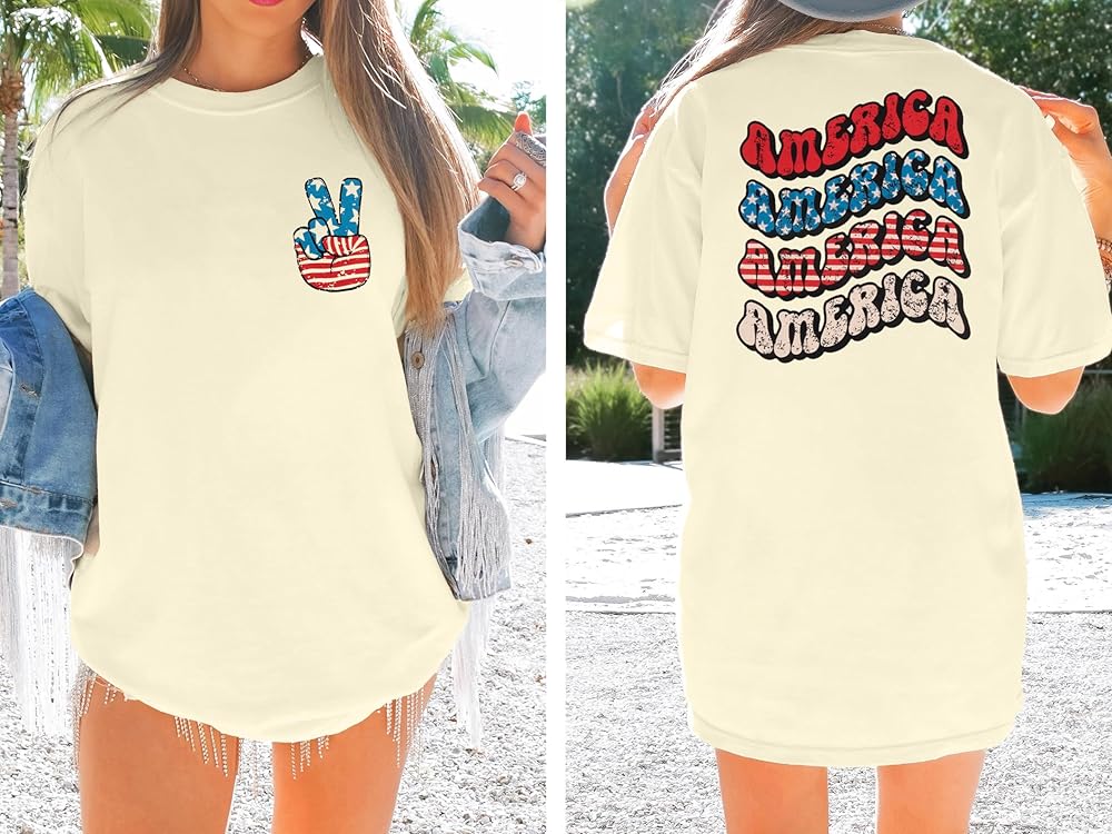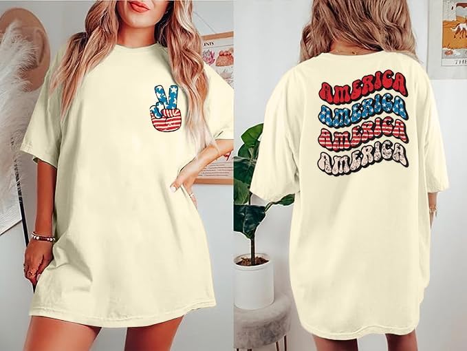 قمصان وطنية للنساء: 1*تي شيرت كبير الحجم بعلم أمريكي علامة السلام قمصان وطنية قميص أمريكا الرابع من يوليو
