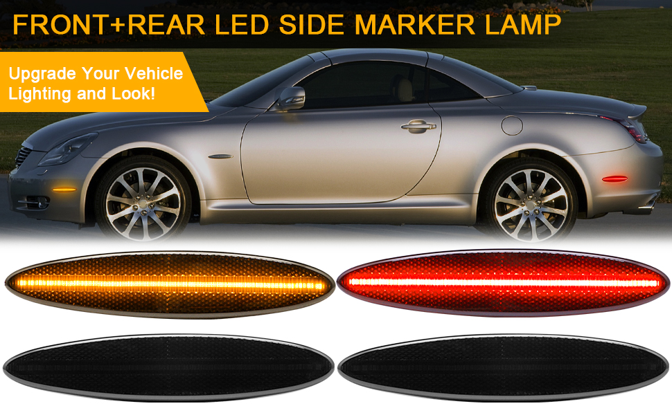 【الإعداد: مصابيح LED للعلامات الجانبية متوافقة مع L'exus SC430 (2002-2010). استبدال جزء OEM # الجبهة: 81731-24030,8173124030; خلفي: 81751-24010,8173124010.
