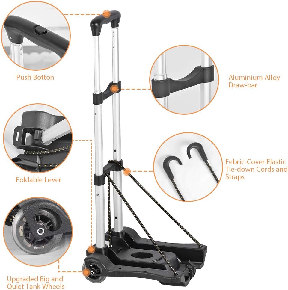 Constructed from solid, yet lightweight aluminum Alloy, resistant to corrosion and rust. Oversized rugged wheels (Diameter 8cm) for improved handling.