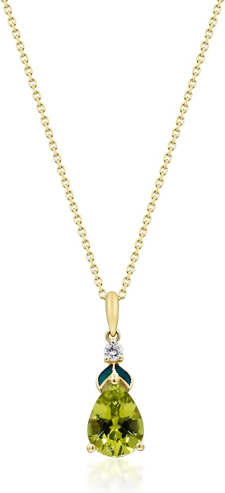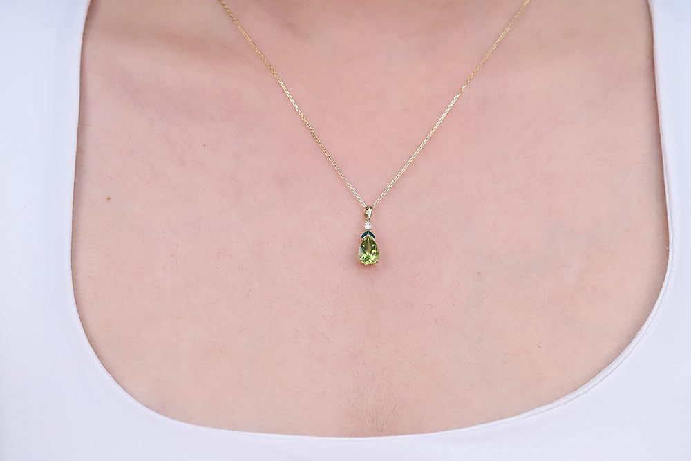 CRAFTSMANSHIP: This exquisite Pendant features 9x7 mm Pear-cut Peridot. Beautifully crafted from 10K Yellow Gold with Peridot and Diamond creating a classic and sparkling design.