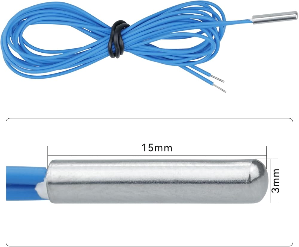 Thermistor Ntc 100k 3950 Temperature Sensor :Metal Head Diameter: 3mm, Head Length: 15mm, Wire Length: 47.3 Inches/1.2 Meters, Connector: Xh2.54 2-Pin (For Heater Blocks With Apertures Of 3mm*15mm-3mm*20mm)