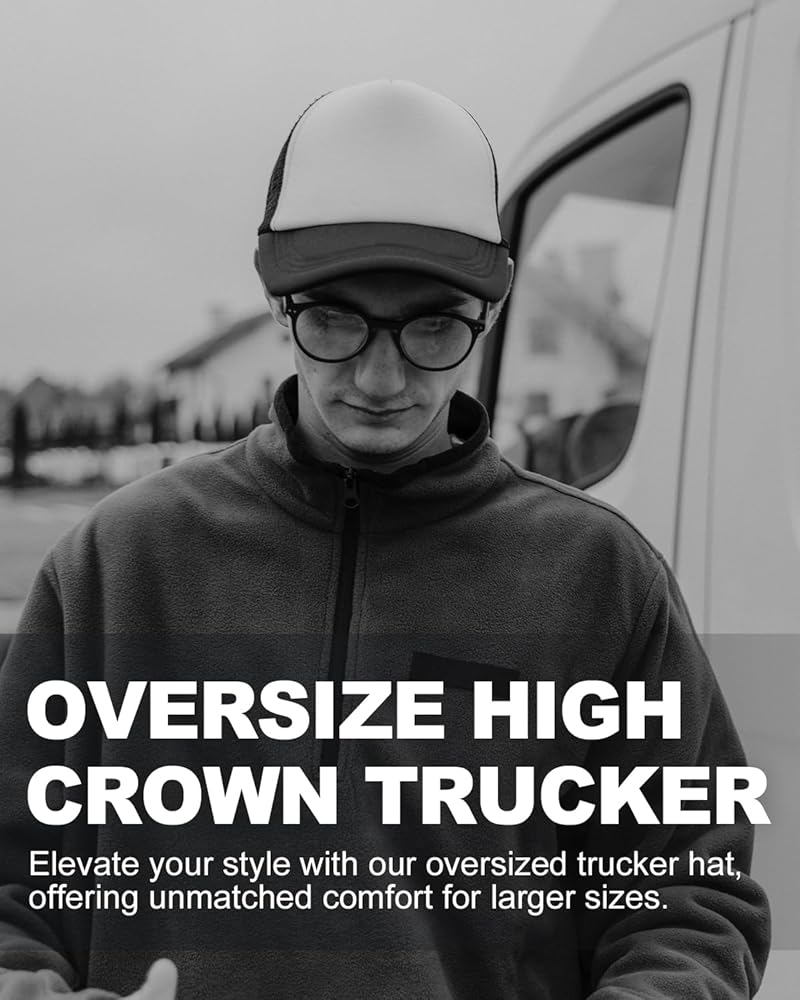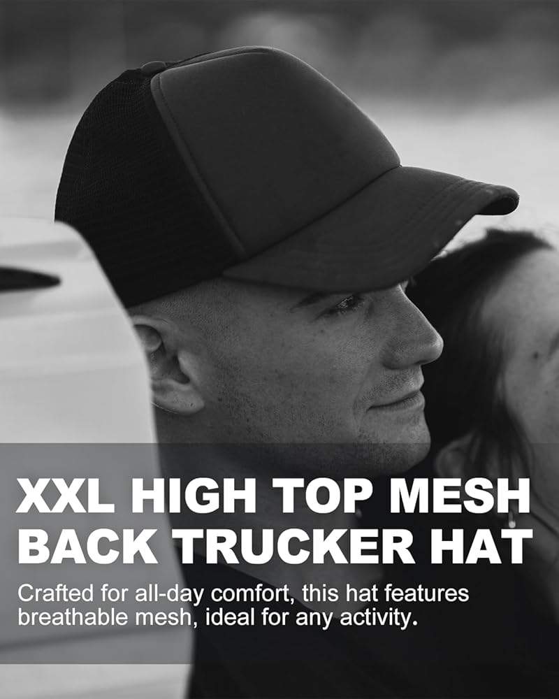 قبعة Snapback من الإسفنج مقاس XXL: XL-2XL تناسب الرؤوس مقاس 23.5 بوصة - 25.5 بوصة. قبعة سائق الشاحنة Snapback مع مشبك قابل للتعديل على الظهر تضمن ملاءمة مريحة ومثالية.