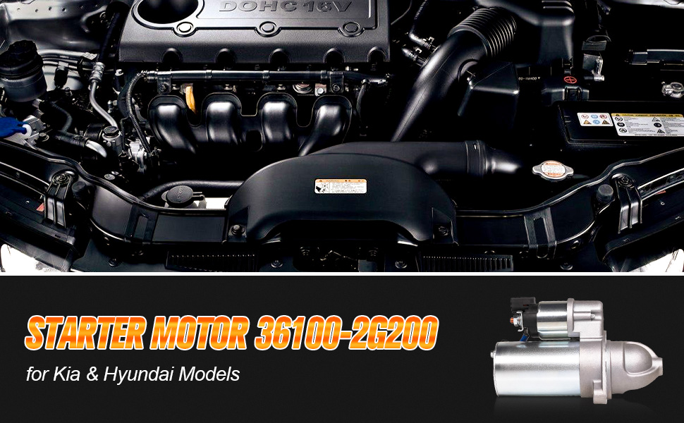 محرك Starter 36100-2G200 متوافق مع Kia Forte/Forte Koup/Forte5/Optima/Sportage، Hyundai Genesis Coupe/Santa Fe Sport/Sonata/Tucson 2011-2016 2.0L 2.4L استبدال 12A1369