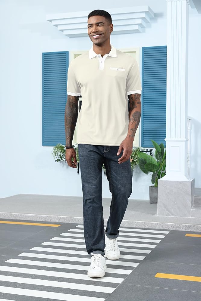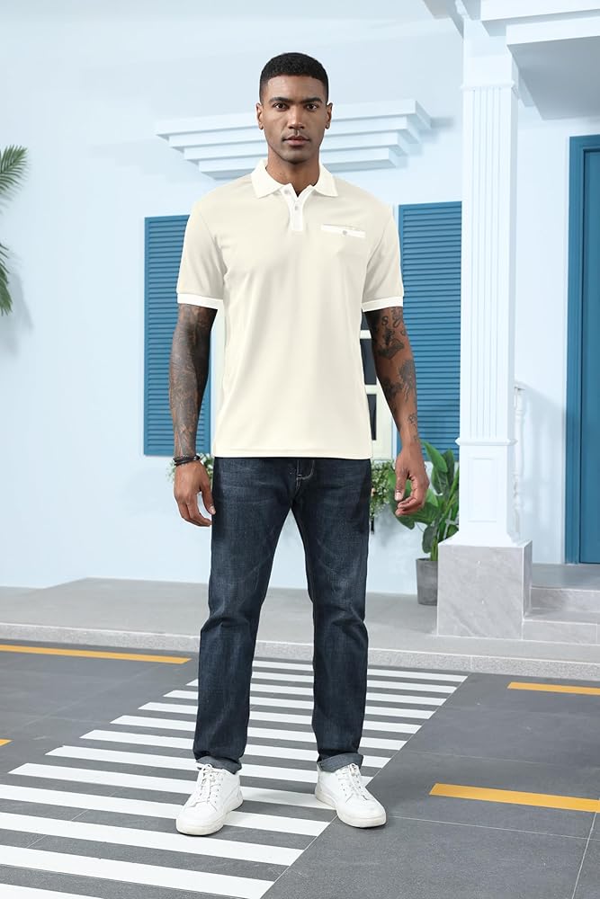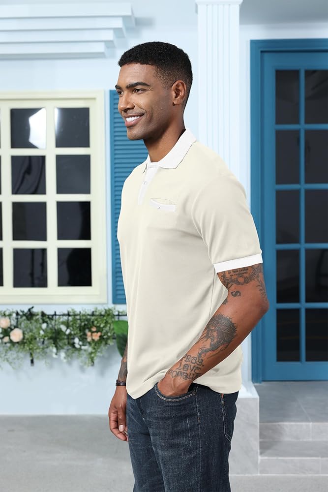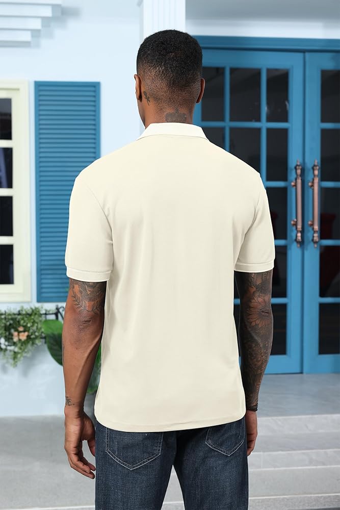 نسيج مطاطي: تتميز قمصان البولو الرياضية هذه للرجال بأداء رياضي وتمدد واسع يسمح بنطاق كامل من الحركة في أي اتجاه.