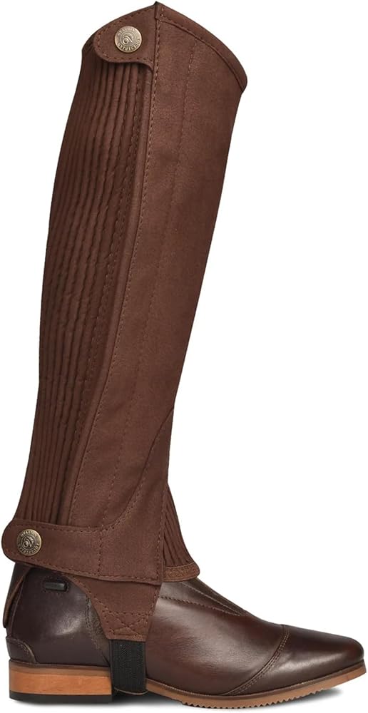 Ovation Elite Amara Childs Half Chap Soft Amara half chaps with ribbed stretch panels, snap closures at top and bottom, and hidden genuine YKK(R) dirt-resistant zippers