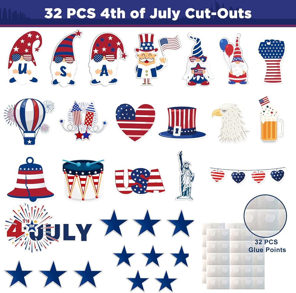 Package Contents: 32 Patriotic Cut Outs + 32 Glue Points