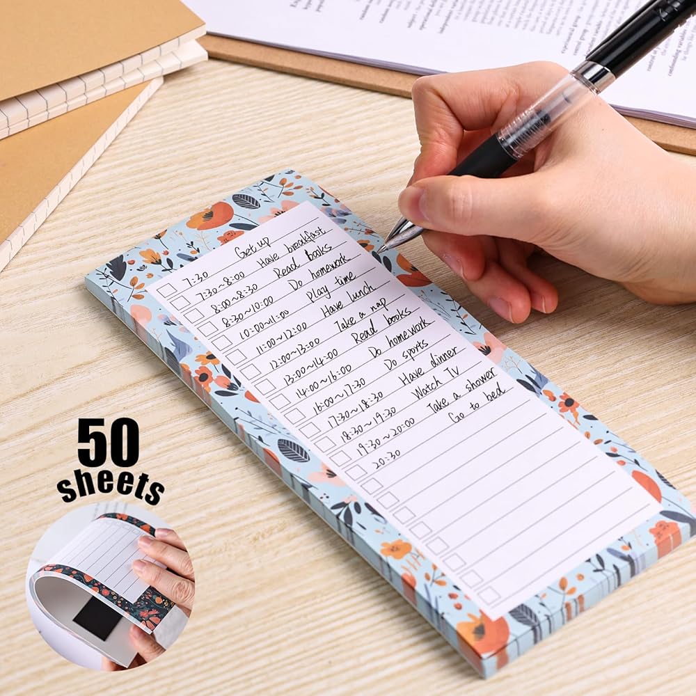 4 قطع من دفاتر الملاحظات المغناطيسية للثلاجة، دفاتر ملاحظات لقائمة التسوق وقائمة المهام والتذكيرات بتصميم الأزهار 50 ورقة