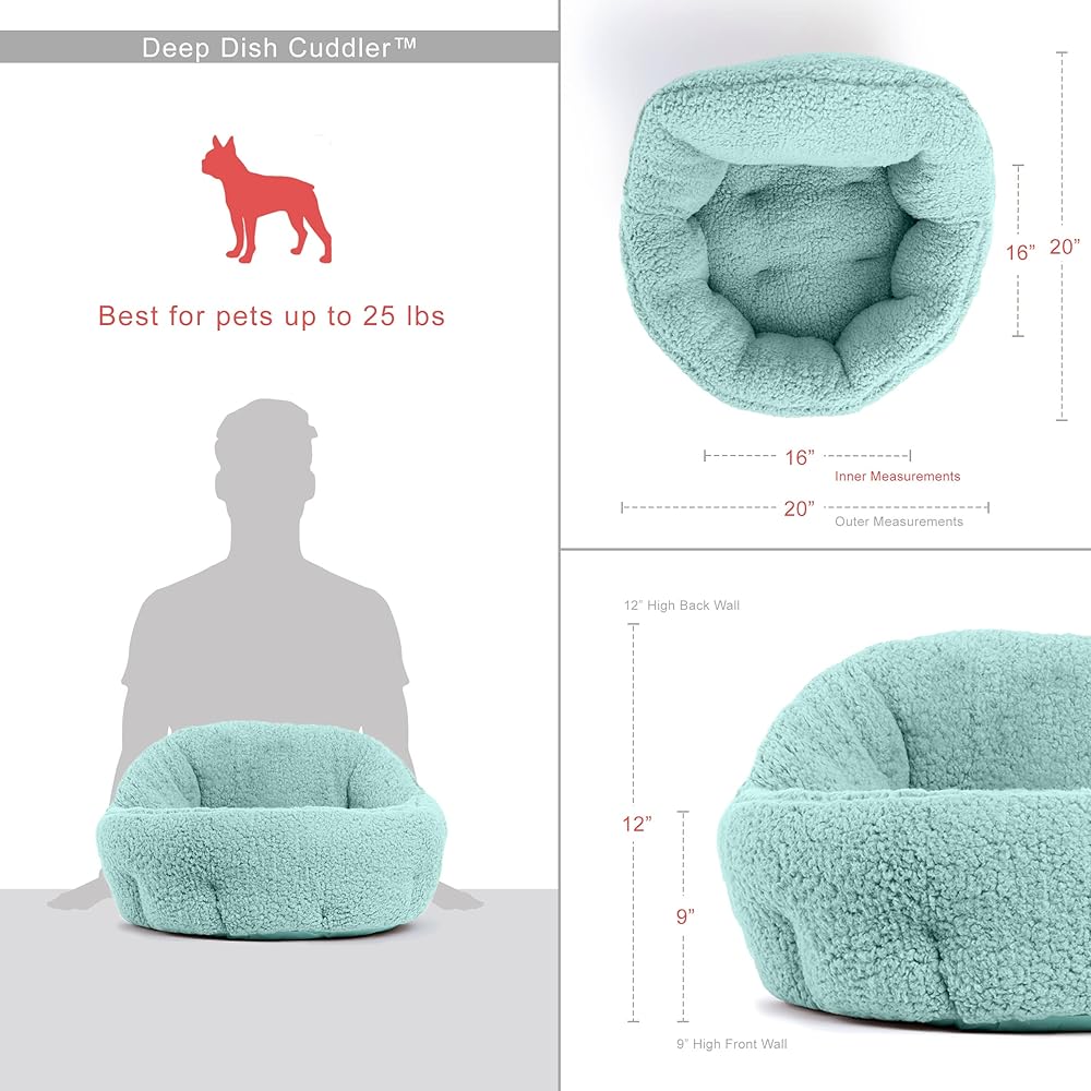 DESIGNED FOR ANIMALS LOVED BY PET PARENTS! Cozy warm and comfortable a pet bed is a must-have for your four-legged friend. While many models promote better sleep they become flat and uncomfortable the more your pet uses them. What s worse they hold odors and are impossible to clean. Show your pet some TLC with an OrthoComfort Deep Dish Cuddler from Best Friends by Sheri! Measuring 20 long 20 wide and high 9 tall it can easily accommodate animals up to 25lbs and provides the sense of security they need in order to sleep deeply. Dogs cats and even rabbits will enjoy the self-warming faux fur mimicking the comfort of a mother s fur while promoting better sleep health and behavior. Our innovative design features a 12 rear bolster offering back support and easing joint tension! Paired with a curved 9 front pets will enjoy additional head and neck support. With its flexible design animals can sleep in any position.