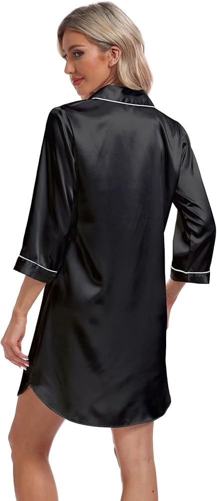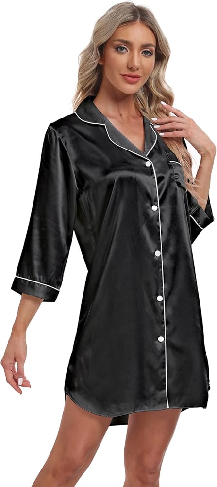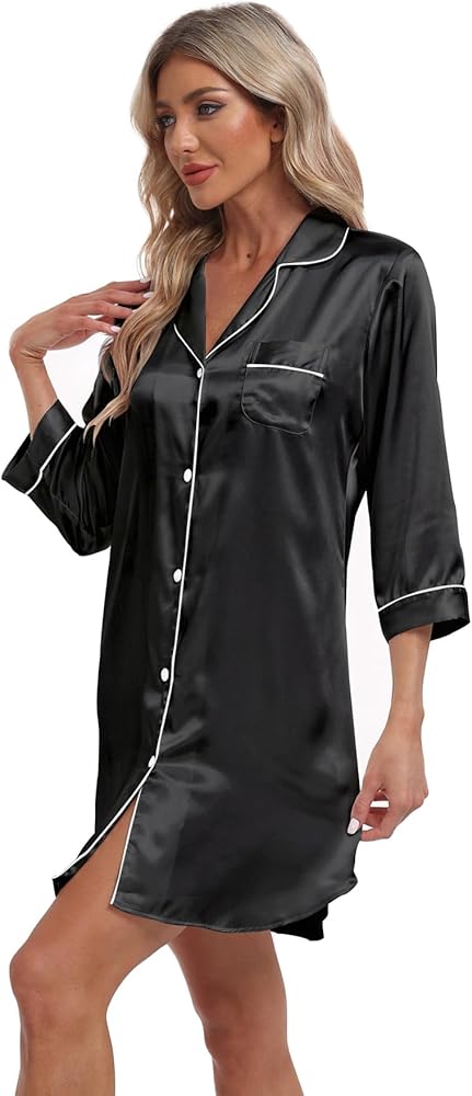 • قميص نوم على طراز Boyfriend: فستان البيجامة الحريري هذا مريح وجذاب ومثير. تصميم بأزرار سفلية لسهولة الوصول للرضاعة الطبيعية. طول الأكمام المناسب تمامًا مناسب لك للقيام ببعض الأعمال المنزلية مثل غسل الأطباق. قمصان النوم الفاخرة تبقيك أنيقًا وحساسًا طوال الليل.