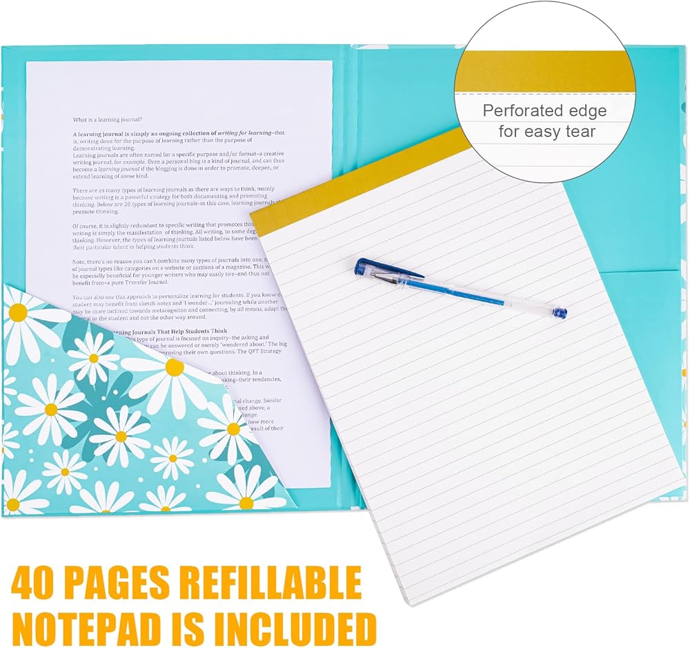 NiArt Clipboard Folio Clipboard Folder with Interior Storage Pocket Refillable Lined Notepad Pen Loop Portfolio File Holder for Office Business Student Teacher Hospital Warehouse (Daisy Floral Design)