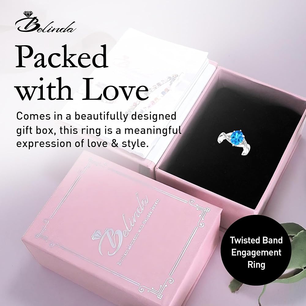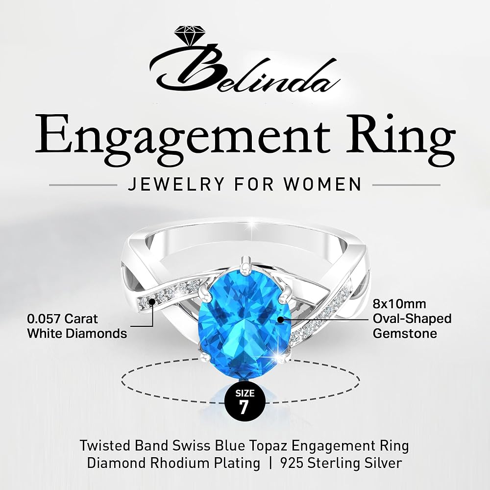 𝗥𝗛𝗢𝗗𝗜𝗨𝗠 𝗣𝗟𝗔𝗧𝗜𝗡𝗚: فضة استرلينية 925 صلبة حقيقية، طلاء روديوم 925، طلاء روديوم عالي اللمعان، مظهر نهائي لامع رائع، حلقات رفيعة بيضاوية الشكل، خاتم توباز أزرق، ألماس مستدير متلألئ، مجوهرات عالية الجودة، خواتم سوليتير من الأحجار الكريمة. يوفر الحزام الملتوي المطلي بالروديوم الماسي لمسة عصرية على التصميم الكلاسيكي، مما يجعل هذا الخاتم خيارًا جميلاً ومتعدد الاستخدامات لأي مناسبة.