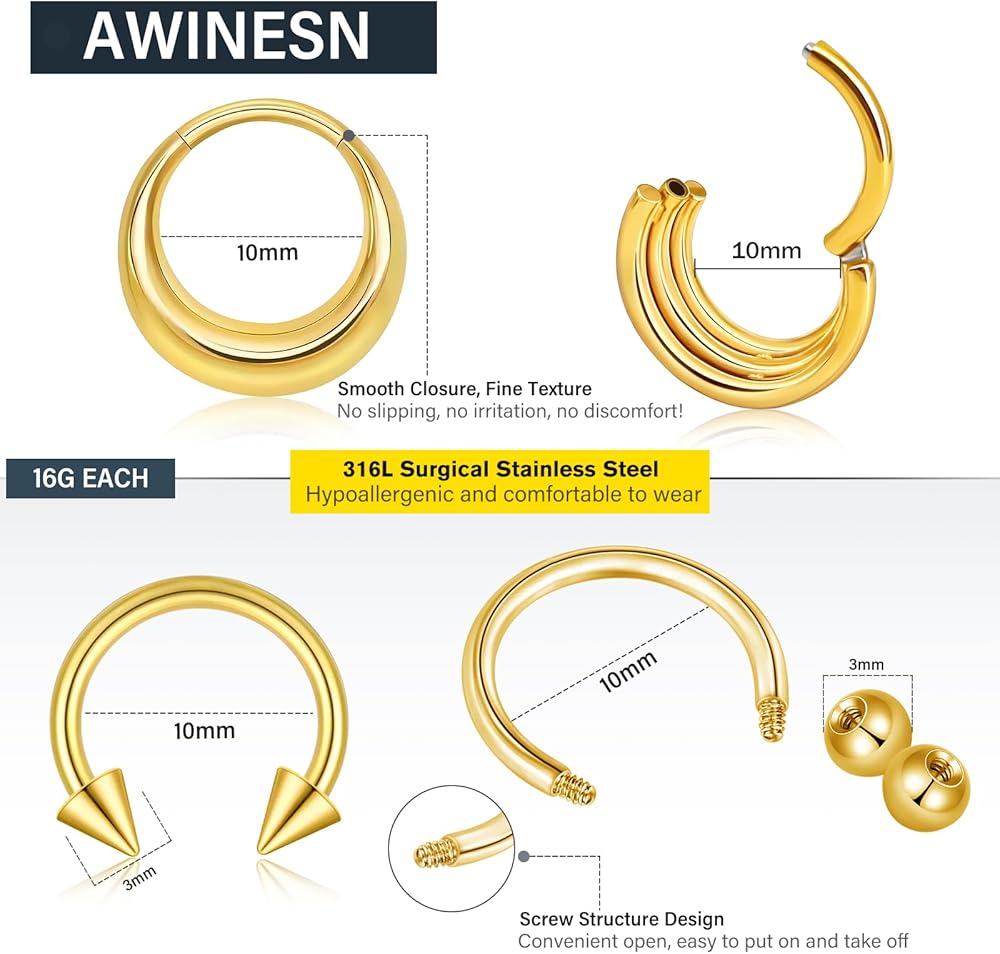 مجوهرات ثقب متعددة الأغراض: يمكن استخدام هذه المجوهرات المثقوبة للغضاريف كحلقات ثقب الجسم، حلقات الأنف، حلقات الشفاه، الأقراط الحلزونية، أقراط الغضروف، أقراط ثقب المحار، وحلقات شحمة الأذن. رائعة للأنف والغضروف والحاجز وقناة الأذن الخارجية وفم النمر والشفاه وحلقات زر البطن وثقب الحلمة. مثالي للارتداء في العديد من المناسبات!