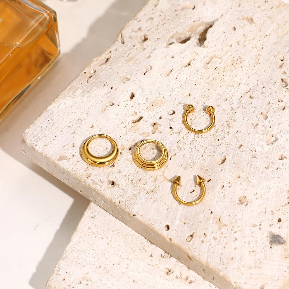مواد عالية الجودة: حلقات الأنف الدائرية للنساء مصنوعة من الفولاذ المقاوم للصدأ الجراحي 316L، لا يسبب الحساسية، وخالي من النيكل والرصاص. مريحة في الارتداء، لا داعي للقلق بشأن الحساسية. الختم أملس ولن ينزلق أو يفتح. يبقى مشدودًا بعد الاستخدام طويل الأمد.