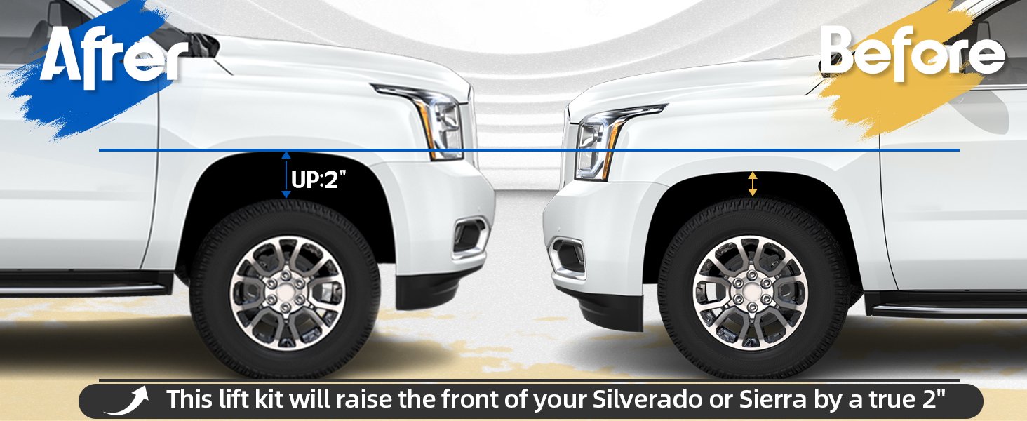 【التوافق: متوافق مع 2007-2024 Silverado 1500(2WD/4WD)، 2007-2024 Sierra 1500(2WD/4WD). يناسب فقط المركبات المجهزة بأذرع التحكم السفلية الأمامية المصنوعة من الفولاذ في المصنع.