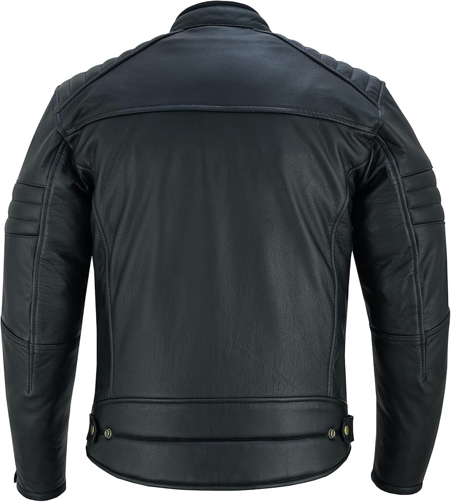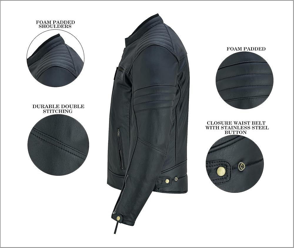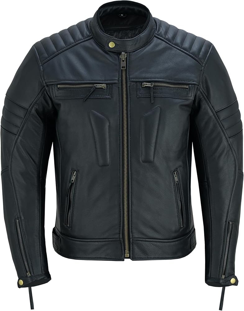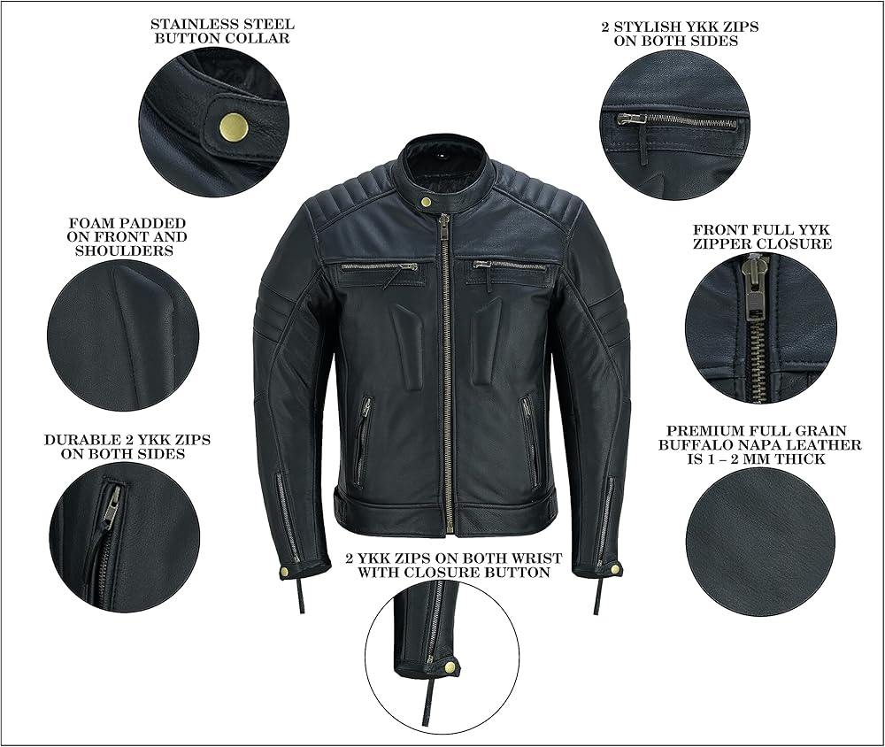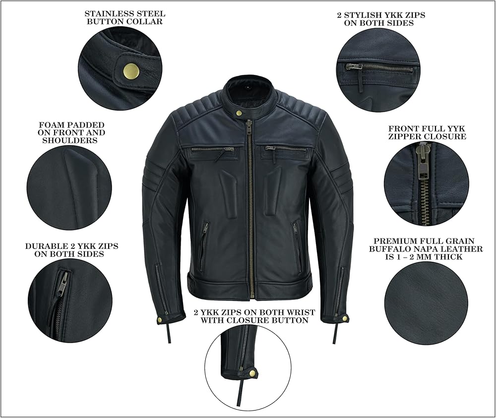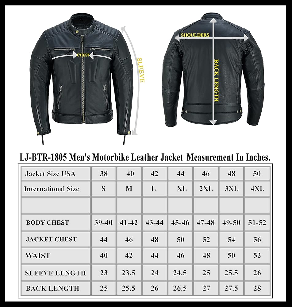 • هيكل جلدي عالي الجودة: مصنوع من جلد البقر عالي الجودة بنسبة 100%، هذا الجاكيت يضفي شعورًا فاخرًا ويعرض أعلى معايير الصناعة اليدوية.