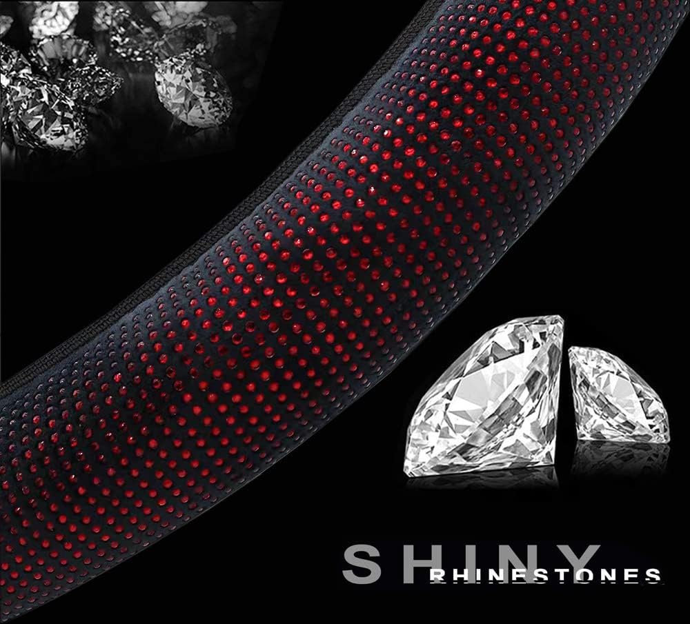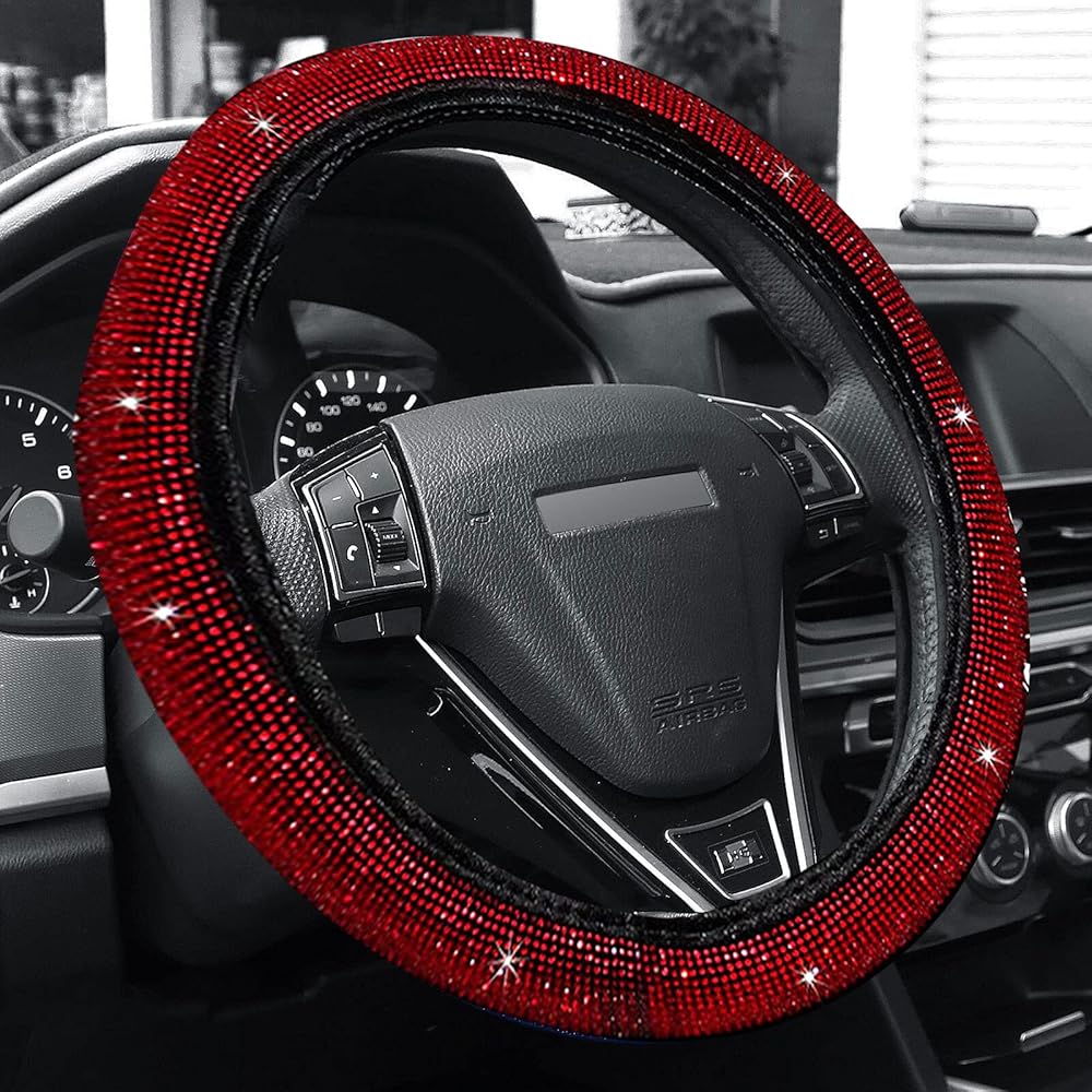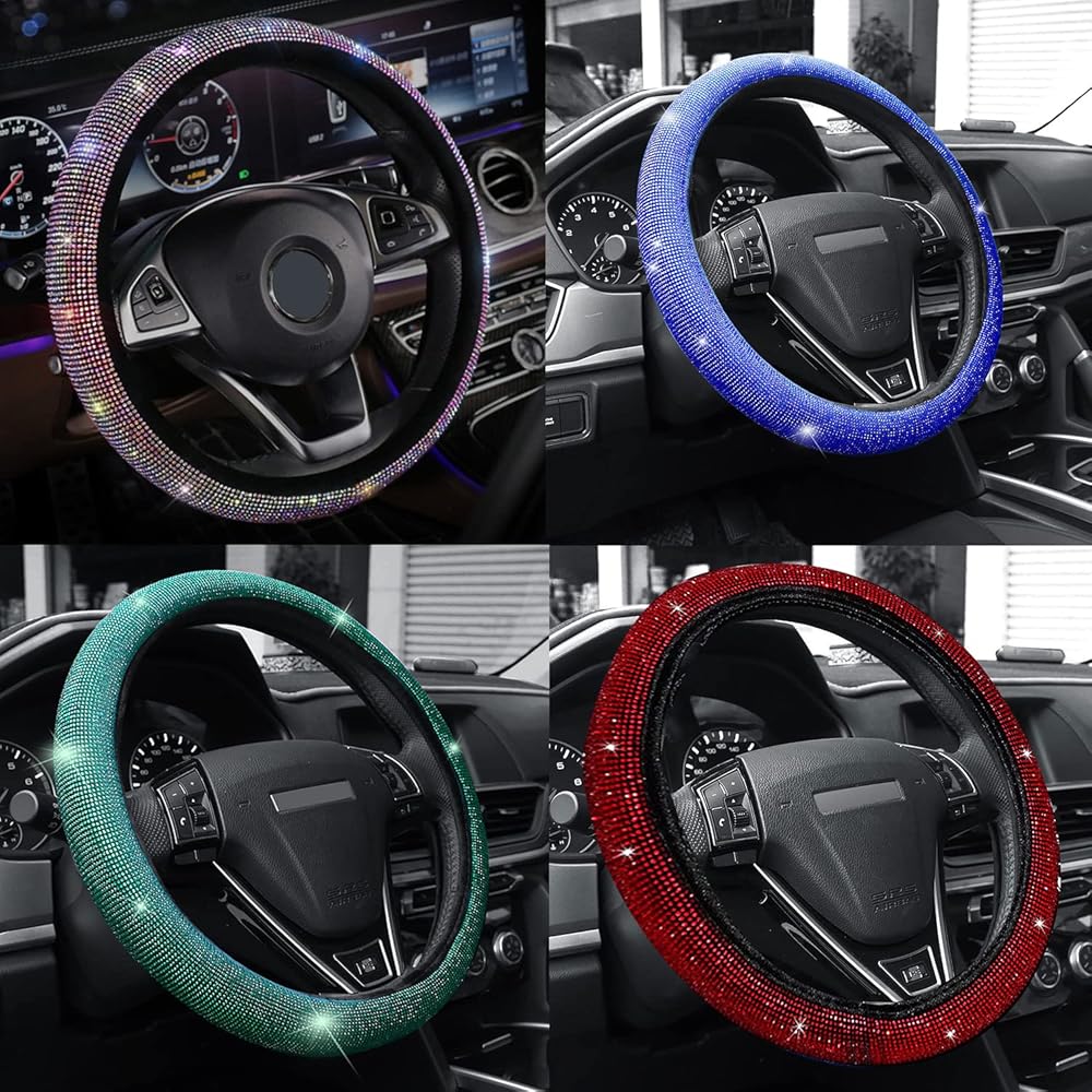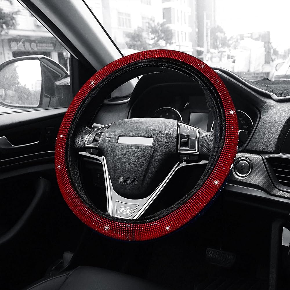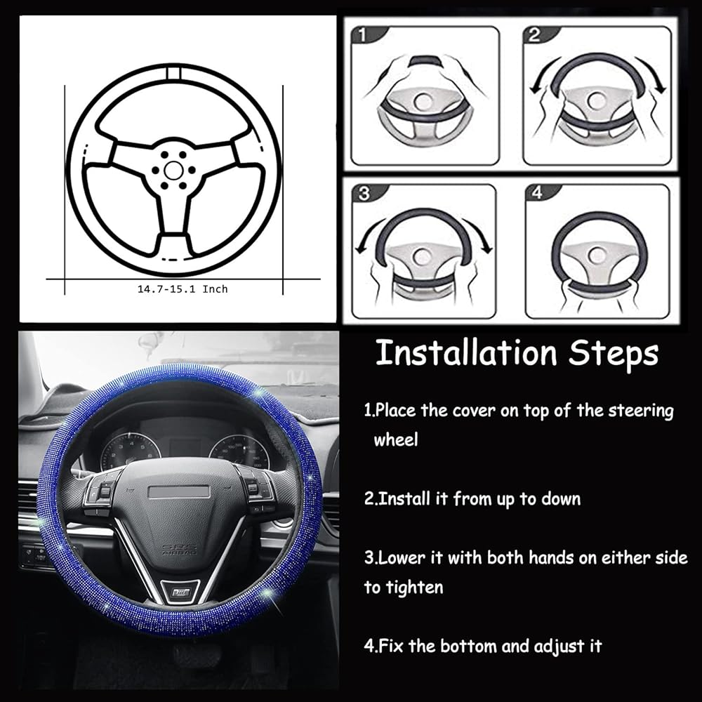 【خامة عالية الجودة】غطاء عجلة القيادة الكريستالي الجديد هذا مصنوع من مخمل متين ومريح ومئات من أحجار الراين اللامعة، التي يمكنها تحمل درجات الحرارة العالية بدون رائحة.
