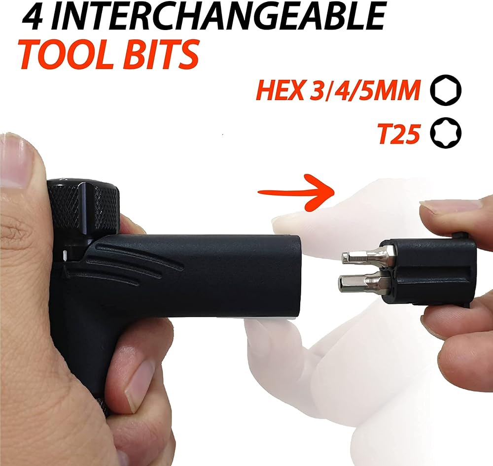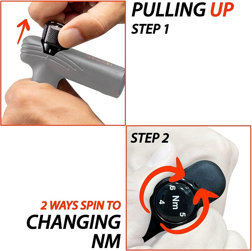 تعديل عزم الدوران بسهولة - لا يتطلب مفاتيح ألين لضبط عزم الدوران. ما عليك سوى استخدام يدك عن طريق سحب مقبض الضبط وإدارته لضبط عزم الدوران المطلوب.