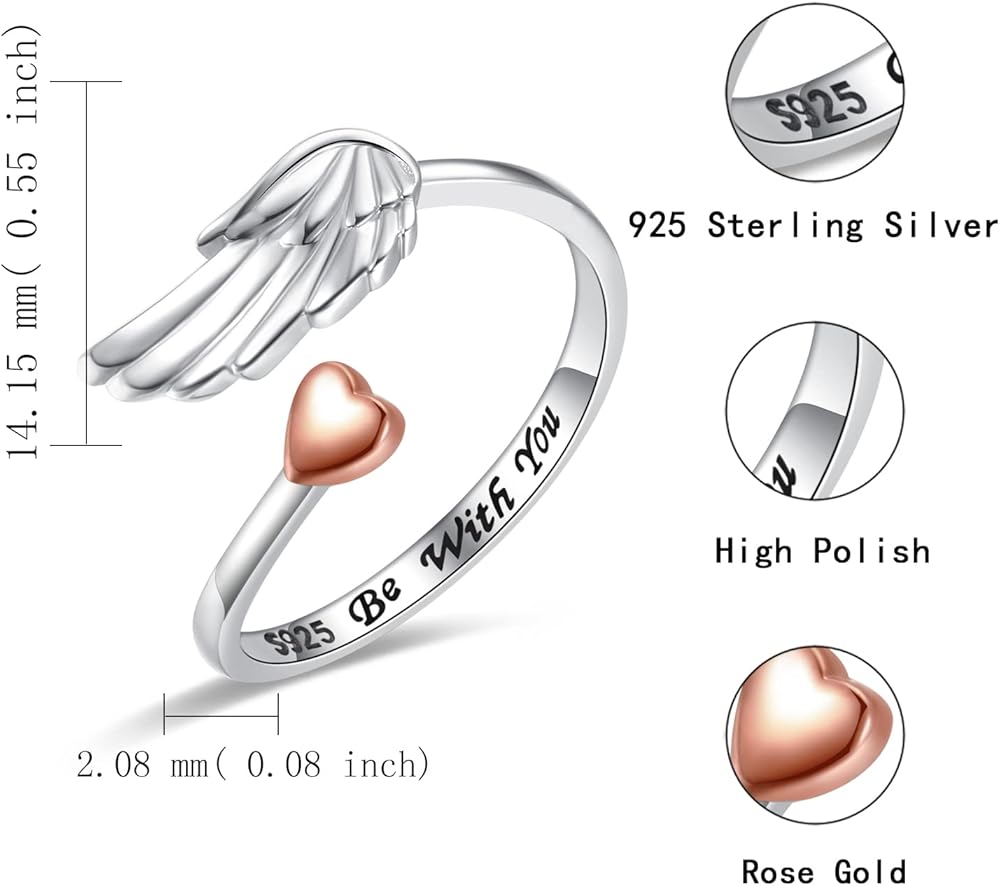 Angel Wing & Heart Design: This ring can be a reminder of your angels that you loved or lost. Wearing this ring like you have a little bit of him/her with you all the time.