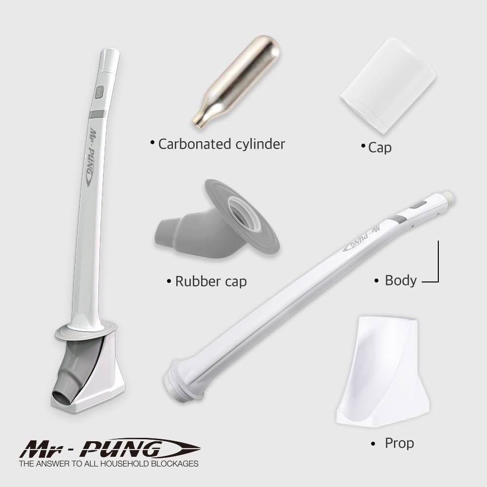 مكابس المرحاض وأسطوانات ثاني أكسيد الكربون باللون الأبيض (كوريا) صندوق واحد (10 قطع) ودليل مستخدم باللغة الإنجليزية البسيطة