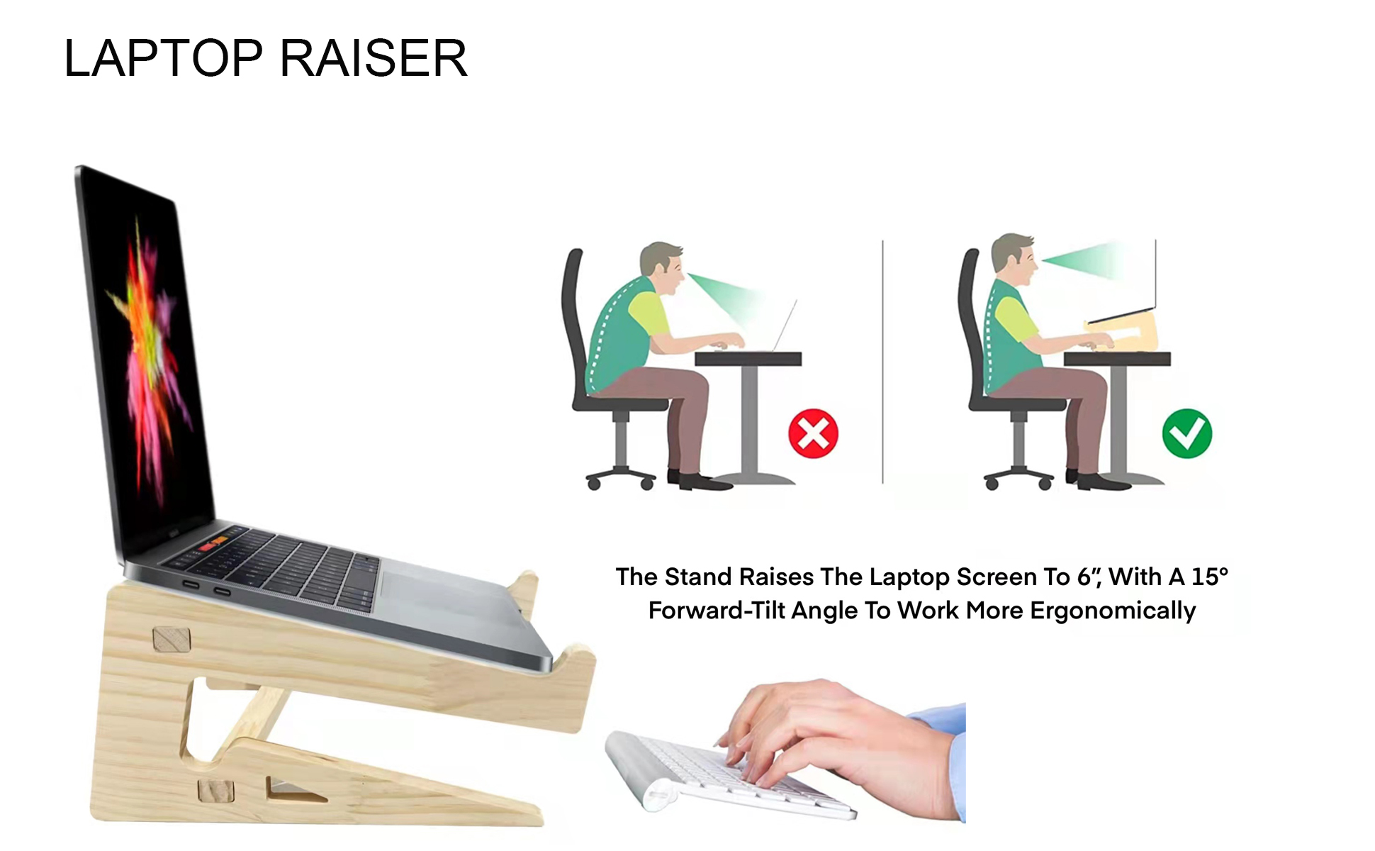 حامل كمبيوتر محمول خشبي مصمم خصيصًا لأجهزة الكمبيوتر المحمولة مقاس 11 إلى 16 بوصة