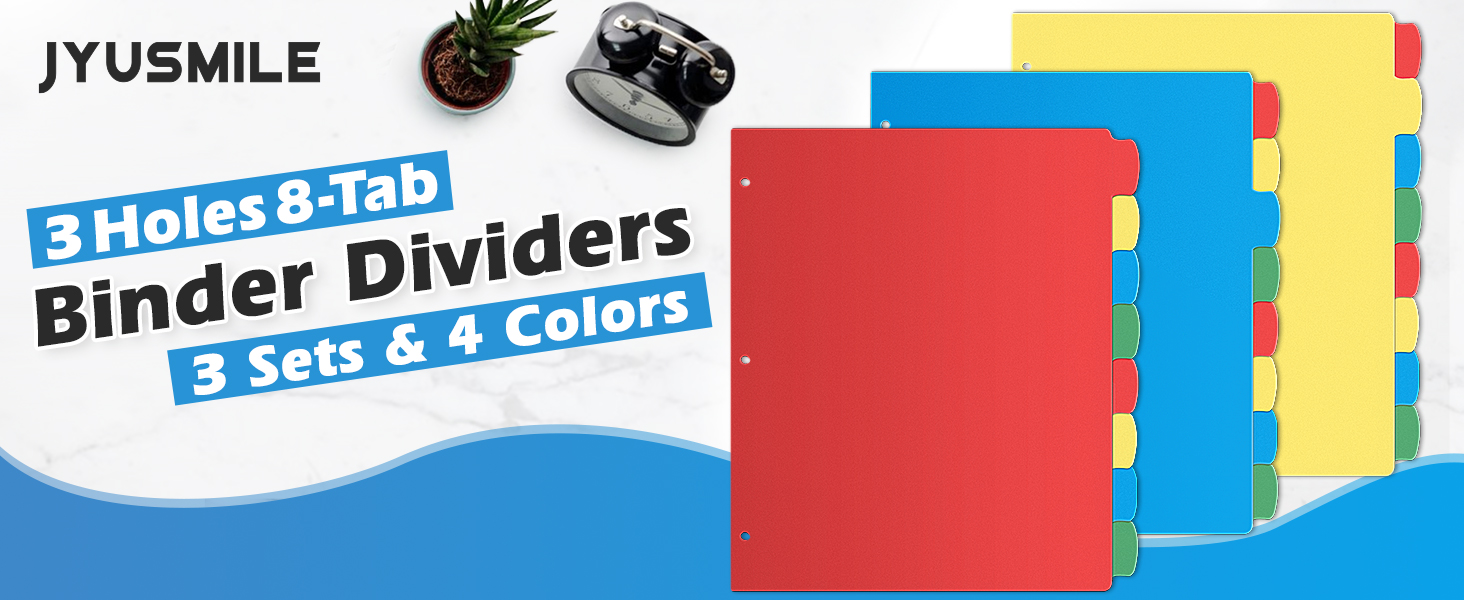 مجموعة 3 فواصل من Jyusmile مكونة من 8 علامات تبويب، وفواصل مؤشرة لـ 3 حلقات، وفواصل بلاستيكية متعددة الألوان مع 3 فتحات ثقب، و24 قطعة فواصل للوازم المدرسية والمكتبية