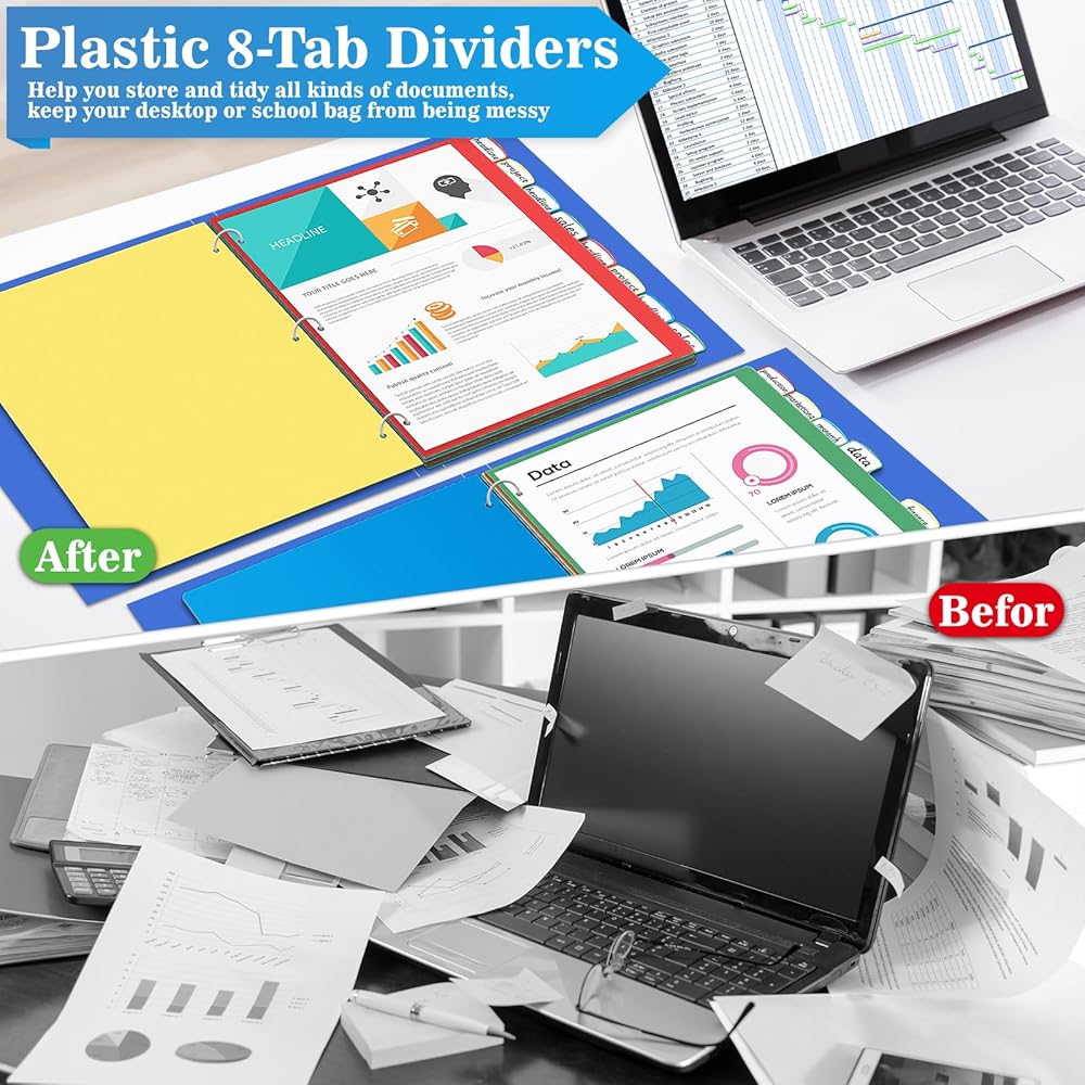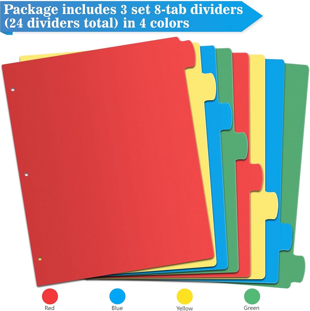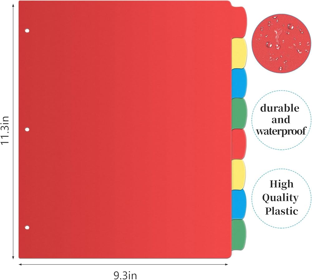 فواصل قيمة لـ 3 حلقات - توفر 3 مجموعات من فواصل الفهرس ذات 8 علامات تبويب، إجمالي 24 قطعة، كافية لك لتنظيم ملفاتك بسهولة وبشكل منظم. وفي الوقت نفسه، فإن فواصل الصفحات ذات 3 فتحات مثقوبة مسبقًا مثالية للمجلدات العادية والمجلدات ذات الثلاث حلقات. مخزون ذو قيمة كبيرة!