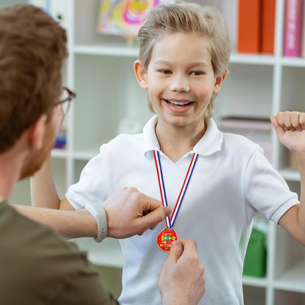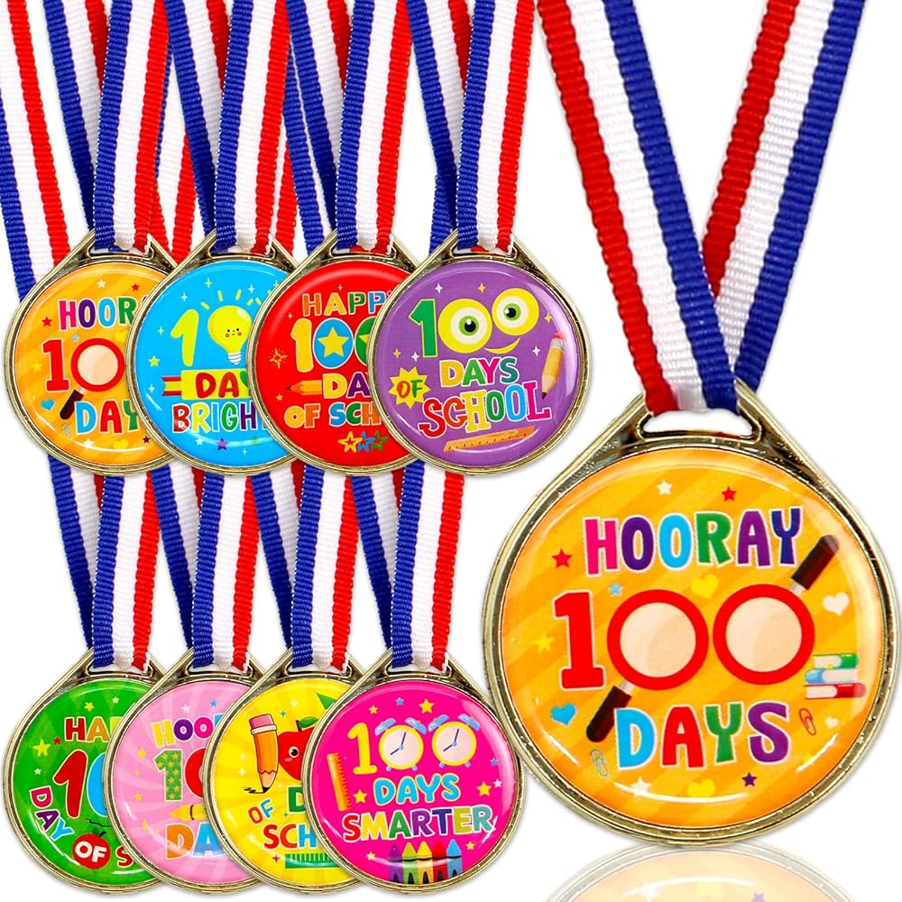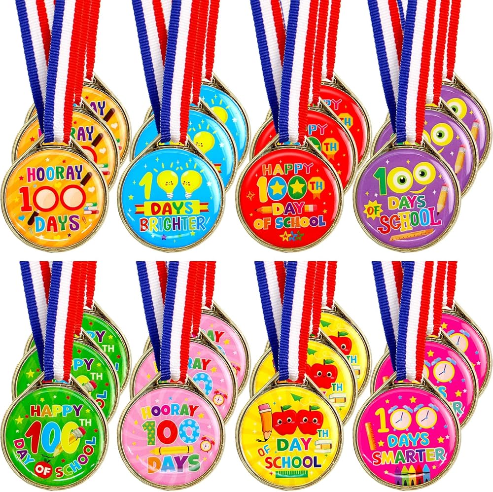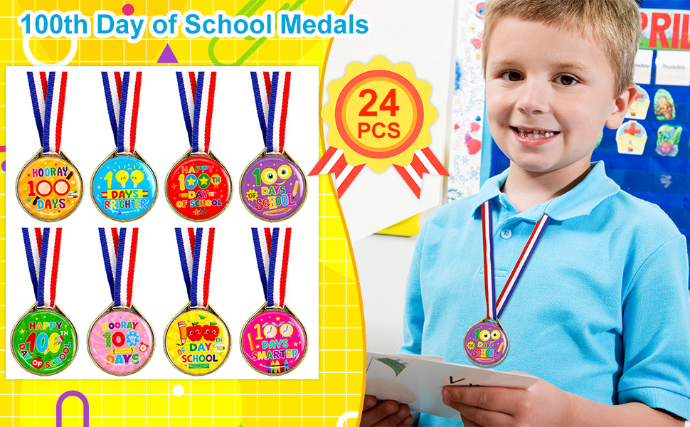 تشمل العبوة: 24 ميدالية لجوائز اليوم المائة من المدرسة للأطفال، 8 أنماط مختلفة، 3 قطع لكل نمط، تصميم على الوجهين.