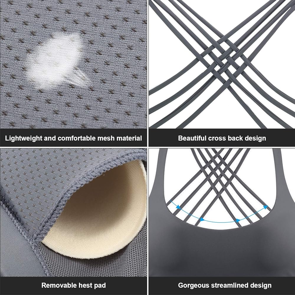 تصميم فريد: تم تصميم حمالة الصدر الرياضية هذه بظهر متقاطع جميل؛ لن تكون الأشرطة المتقاطعة ضيقة، لذا يمكنك لفها بسهولة وإبقائها مريحة ومثيرة أثناء ممارسة الرياضة