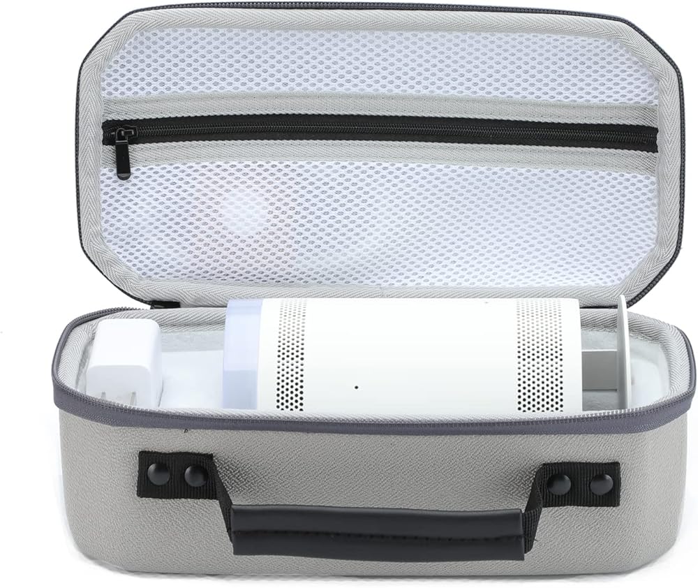 سهل الحمل: جراب بمقبض قوي، مريح للغاية بالنسبة لك لإخراج جهاز العرض المحمول الذكي Samsung الخاص بك وتقليل عبء السفر. حتى في الهواء الطلق، يمكنك الاستمتاع بمشاهدة فيلم.